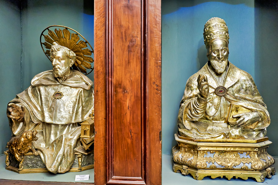 Two silver relics are displayed in the Sacred Relics Chamber in San Domenico Maggiore. This church is located in Naples Campania Italy.
