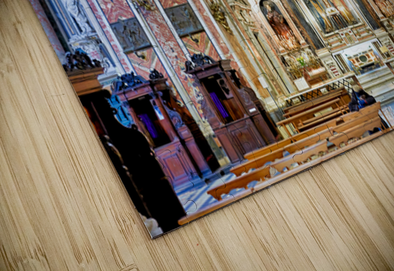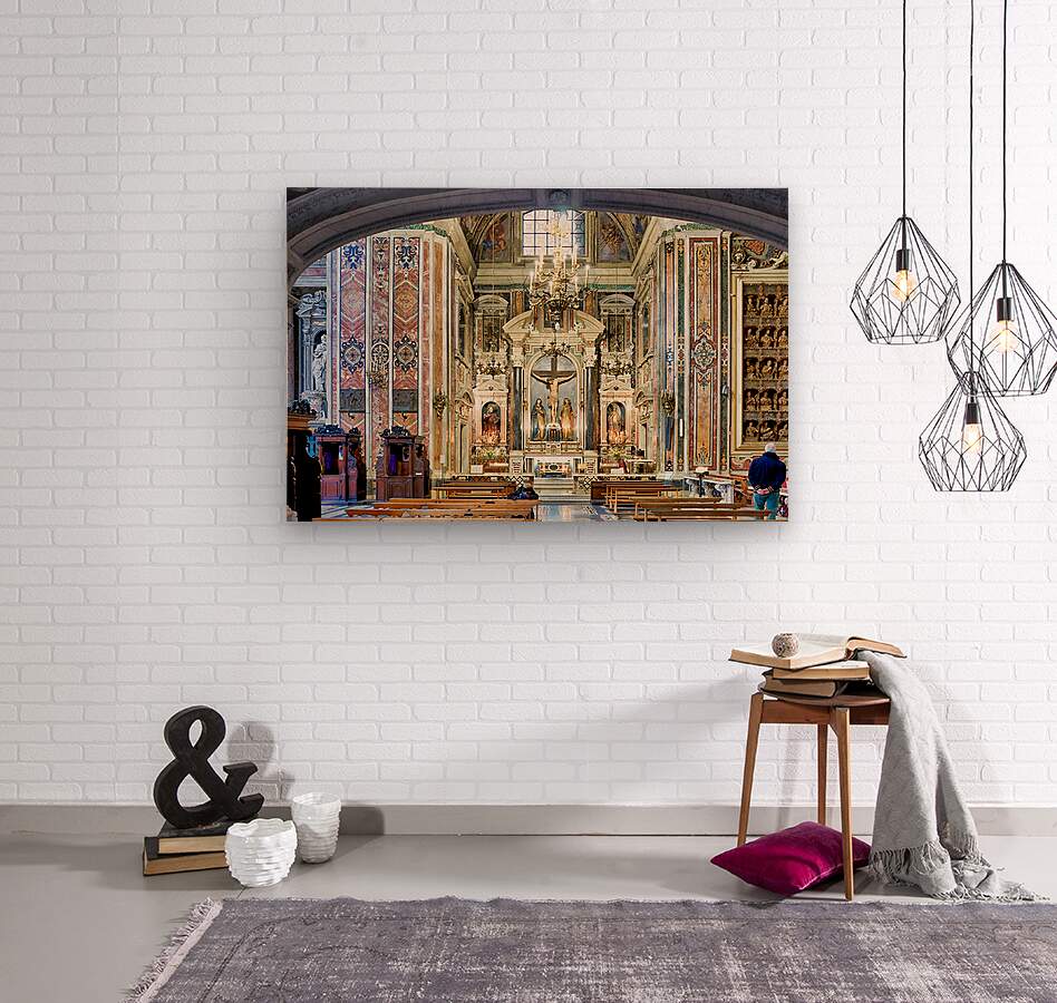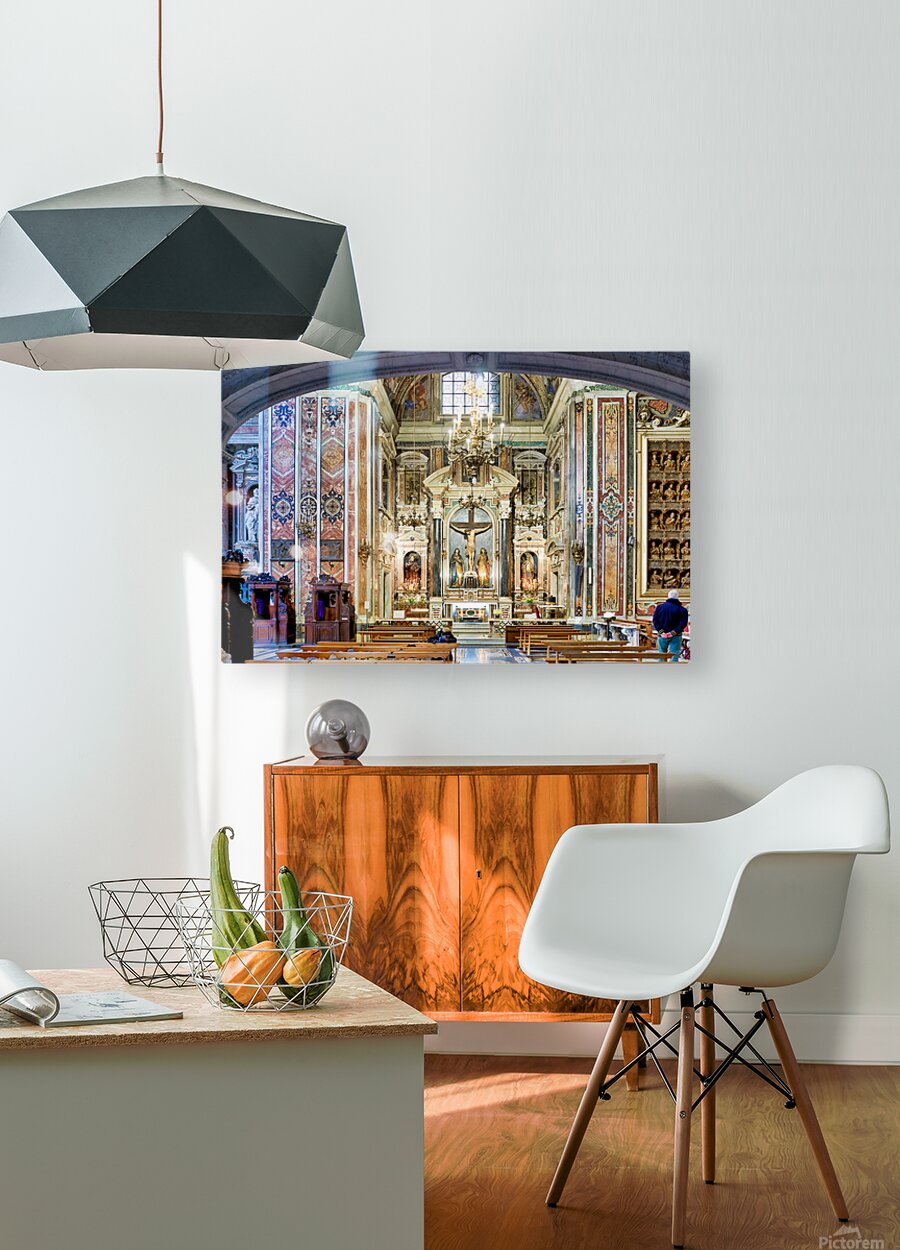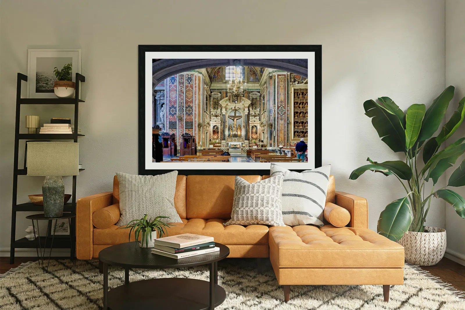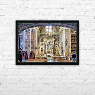 Visitors admire the detailed decorations and artwork inside Gesu Nuovo Church in Naples. The church is an example of baroque design and history.