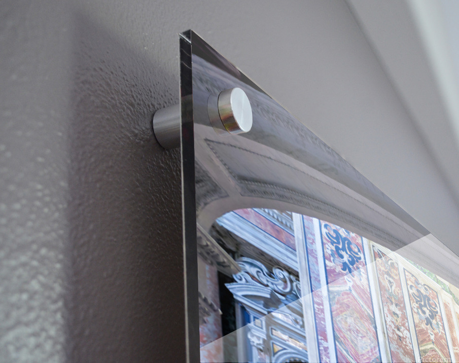Printed to the edge - Ready to hang - provided with 4 premium polished aluminum stand off ( wall screws and mounting hardware provided )