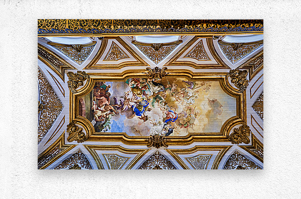 Visitors admire the artwork on the ceiling of the Sacred Relics Chamber in San Domenico Maggiore Napoli. The details showcase religious history.