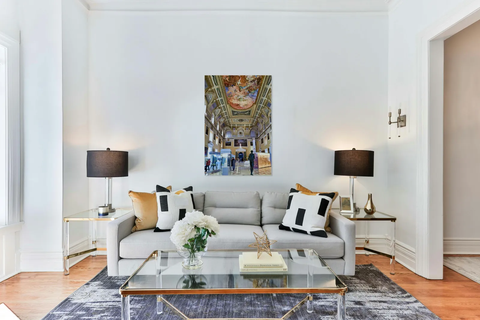Printed to the edge - Ready to hang - provided with 4 premium polished aluminum stand off ( wall screws and mounting hardware provided )