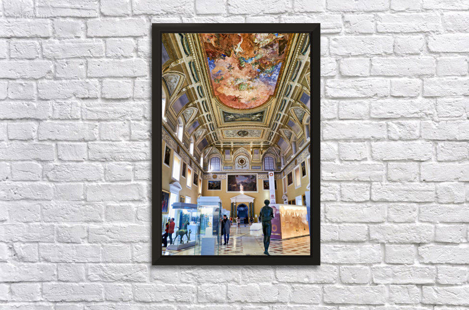 Visitors admire the artwork and exhibits in the National Archaeological Museum of Naples. The museum showcases ancient artifacts and sculptures.