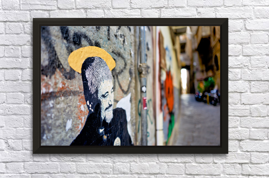 "Mural of pino daniele in via tribunali naples campania italy" in a framed print.