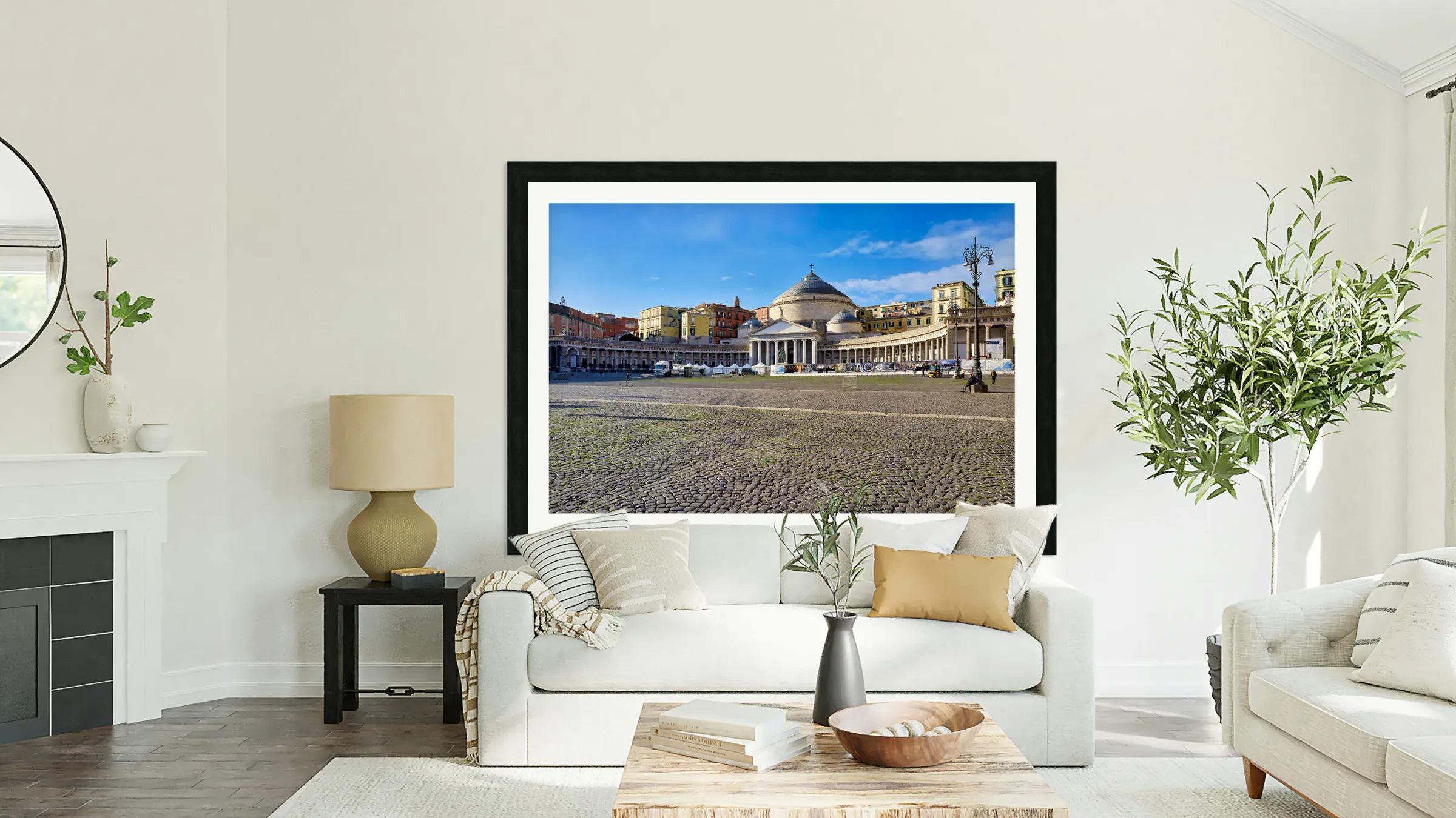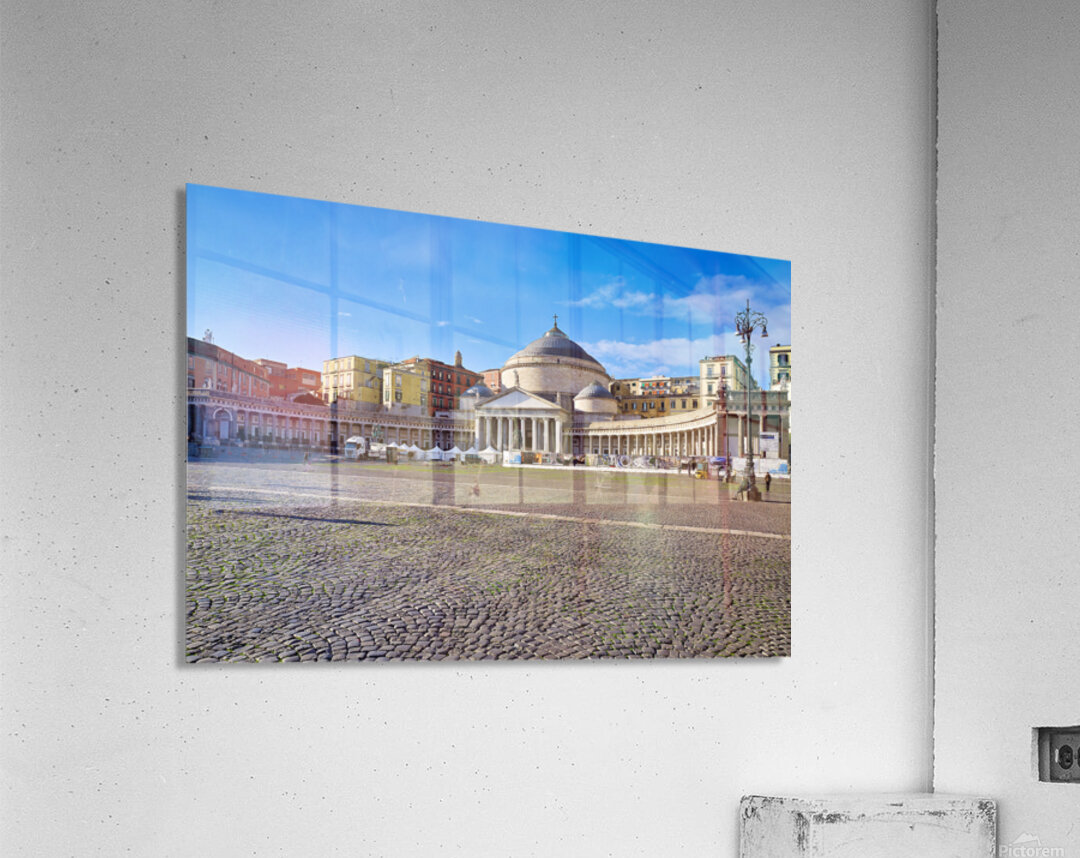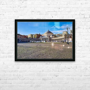 Piazza del Plebiscito in Naples shows a clear day with stone pav Frame print