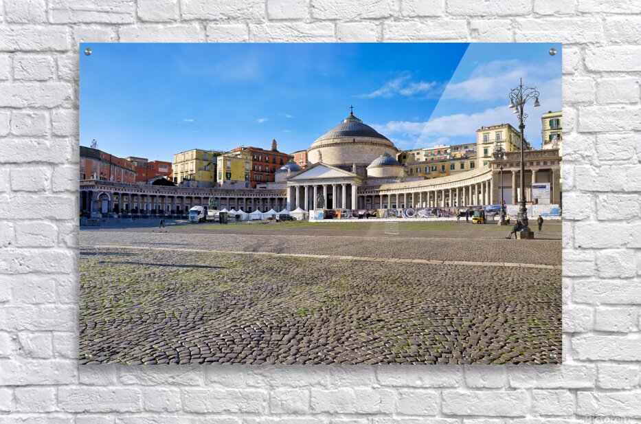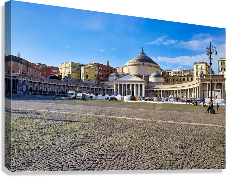 Get this artwork "Piazza del Plebiscito in Naples shows a clear day with stone pav" in a framed print.