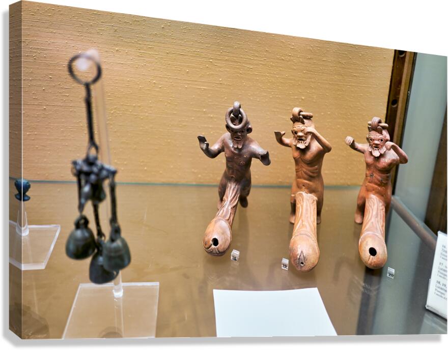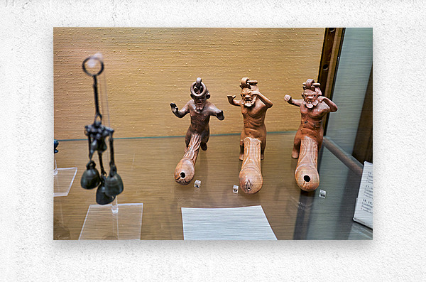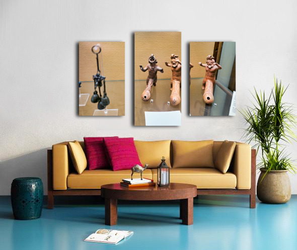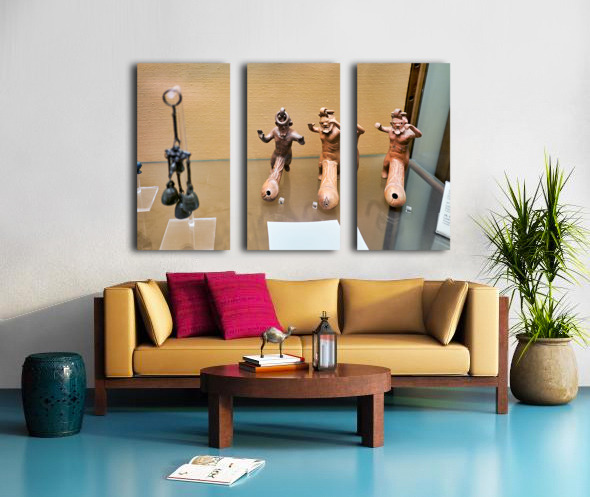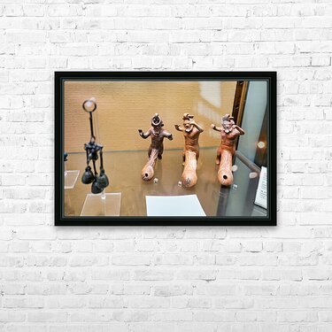 Displays of ancient artifacts are shown in glass cases Picture Frame Printing