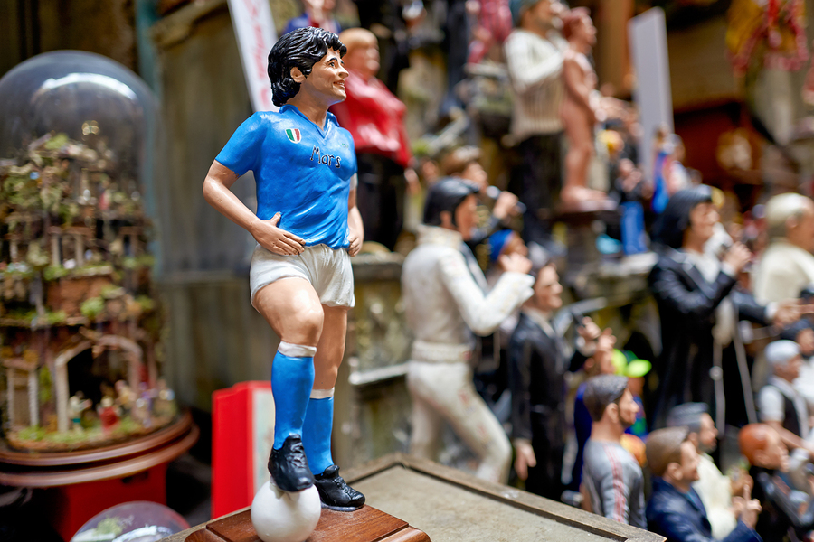 Artisans create nativity scene figures in Naples showcasing local culture and traditions during the holiday season in Via San Gregorio Armeno.