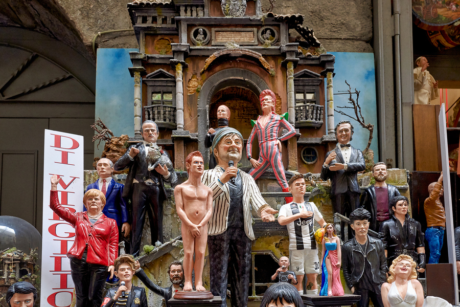 Workers create and display statues of the Christmas Nativity scene in Naples.