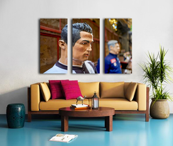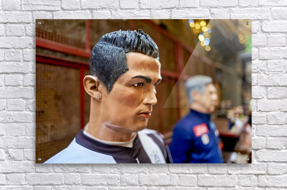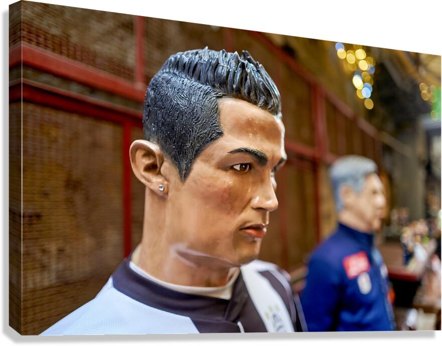 Statues of Christmas nativity scene at artisan workshops in Napl Frame print