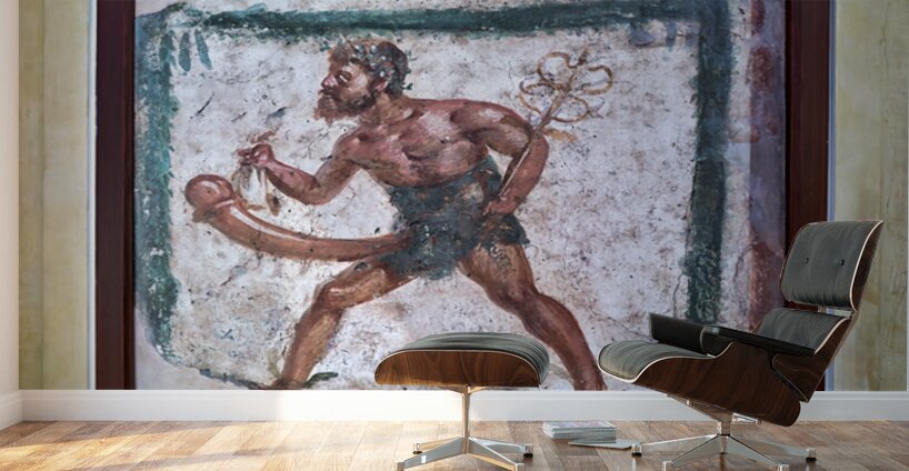 A man holding a large object is shown in an ancient artwork at the National Archaeological Museum of Naples in Campania Italy.