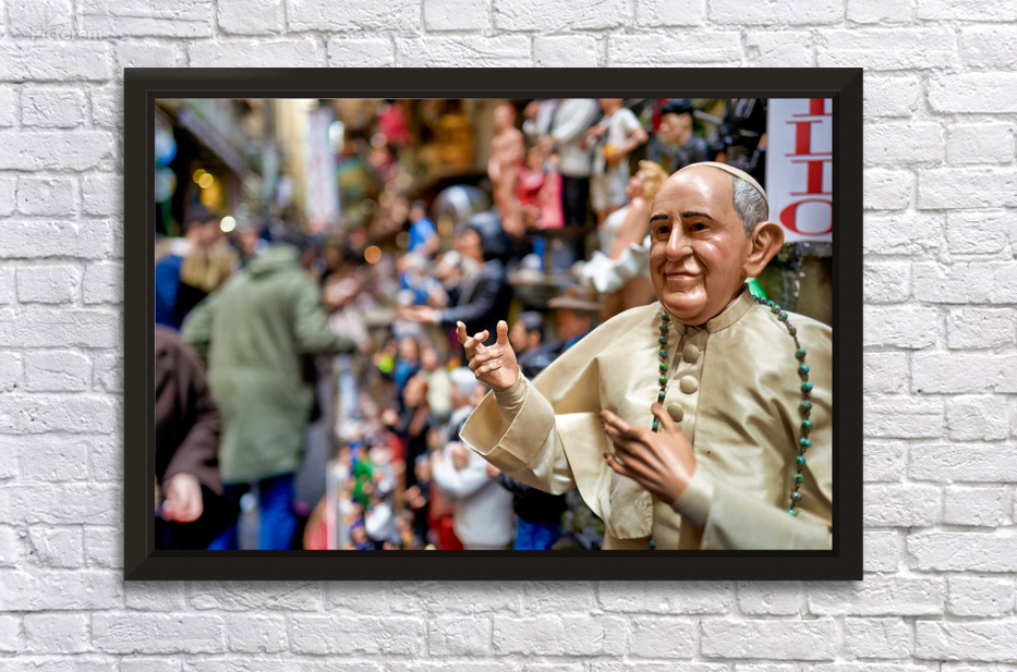 "Exploring the nativity scene figurines in naples campania italy" in a framed print.