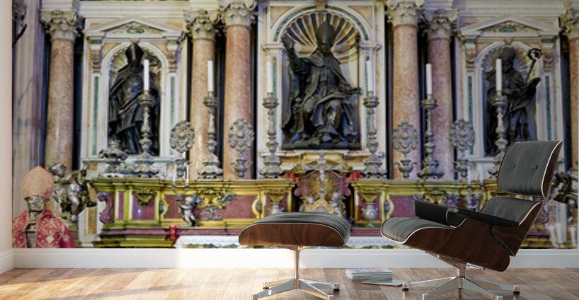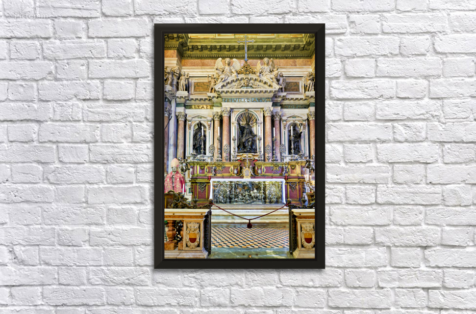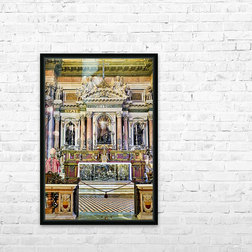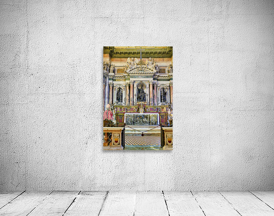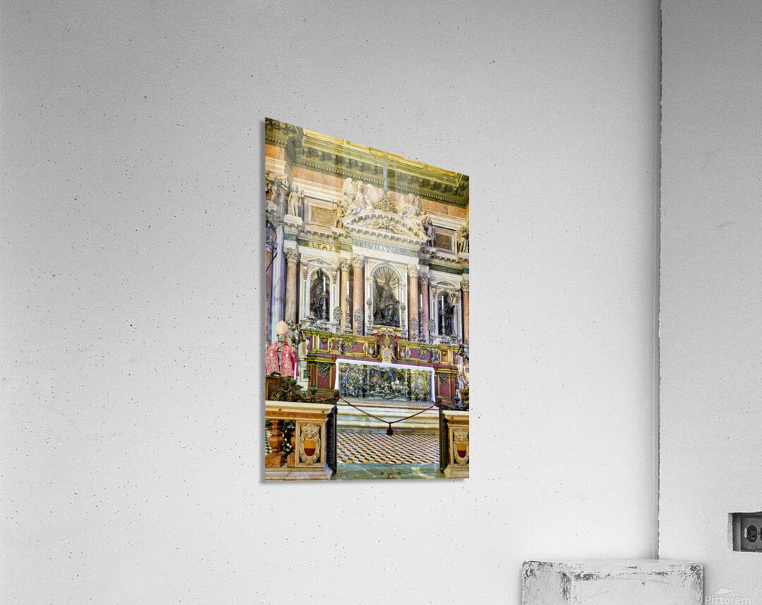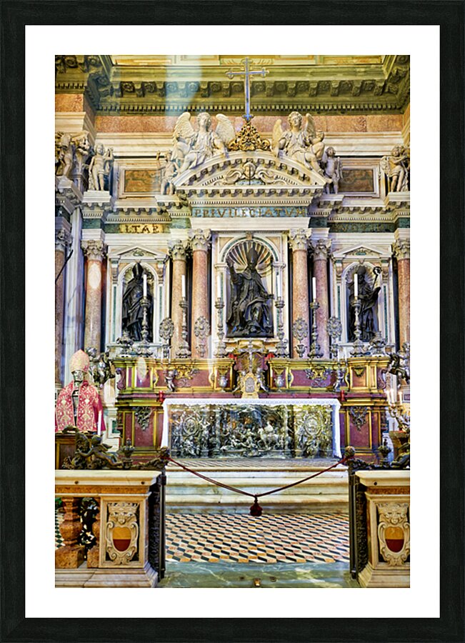 "Visit to Naples Cathedral with altar and decorations" in a framed print.