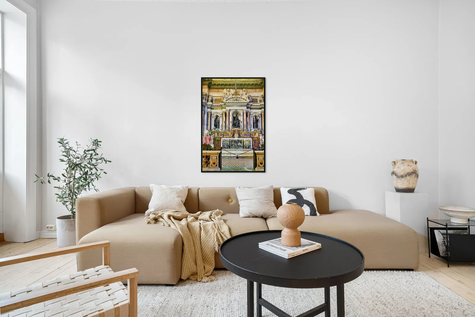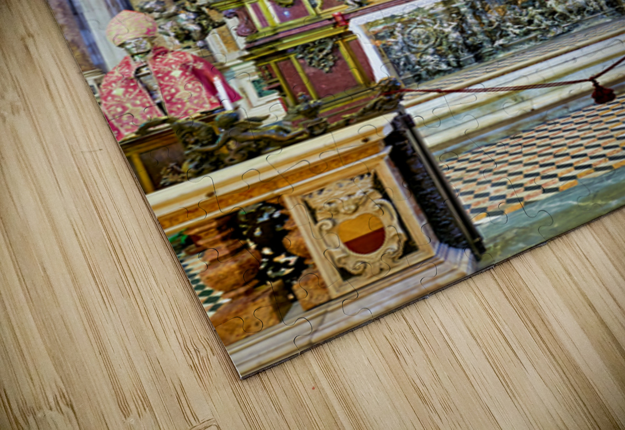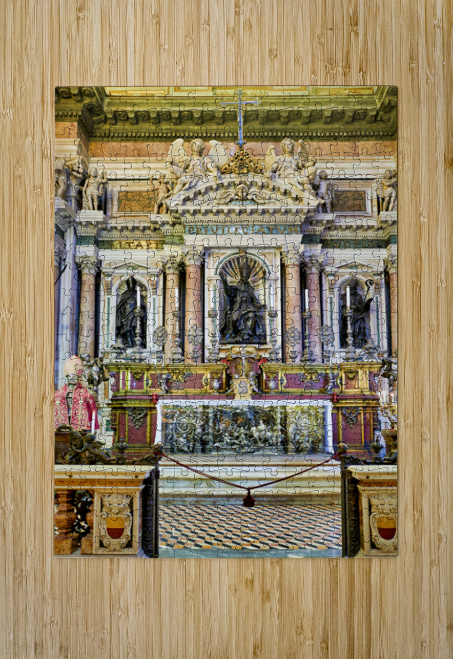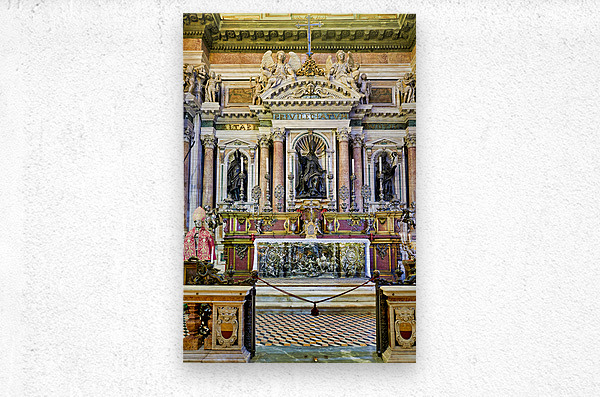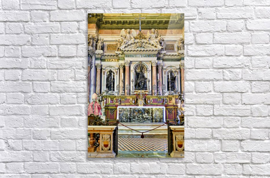 "Visit to Naples Cathedral with altar and decorations" in a framed print.
