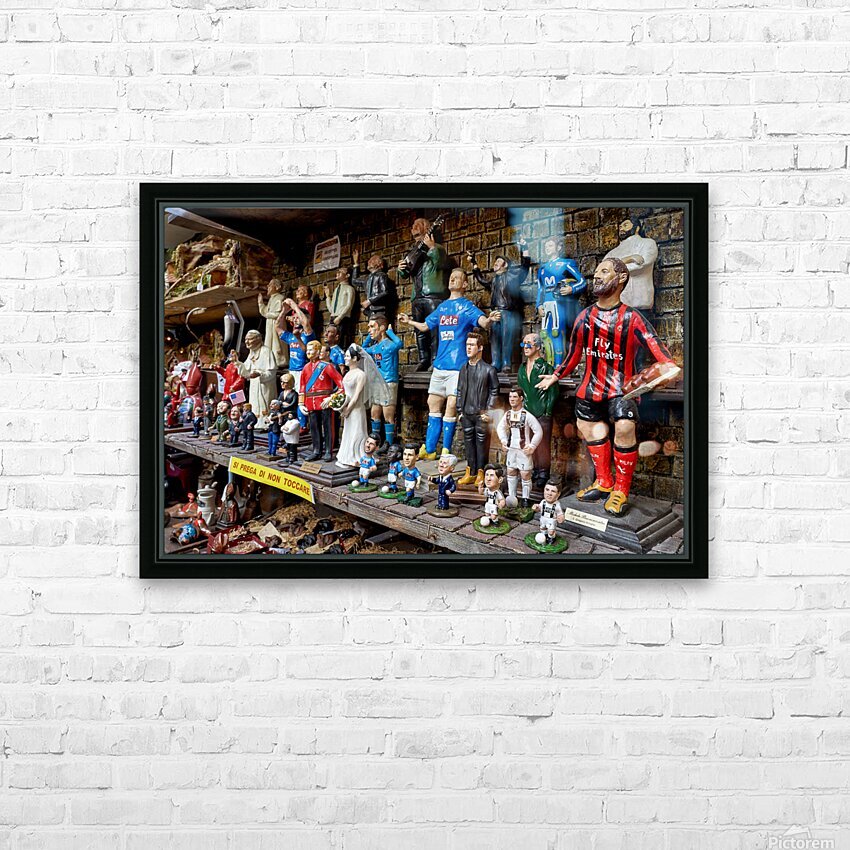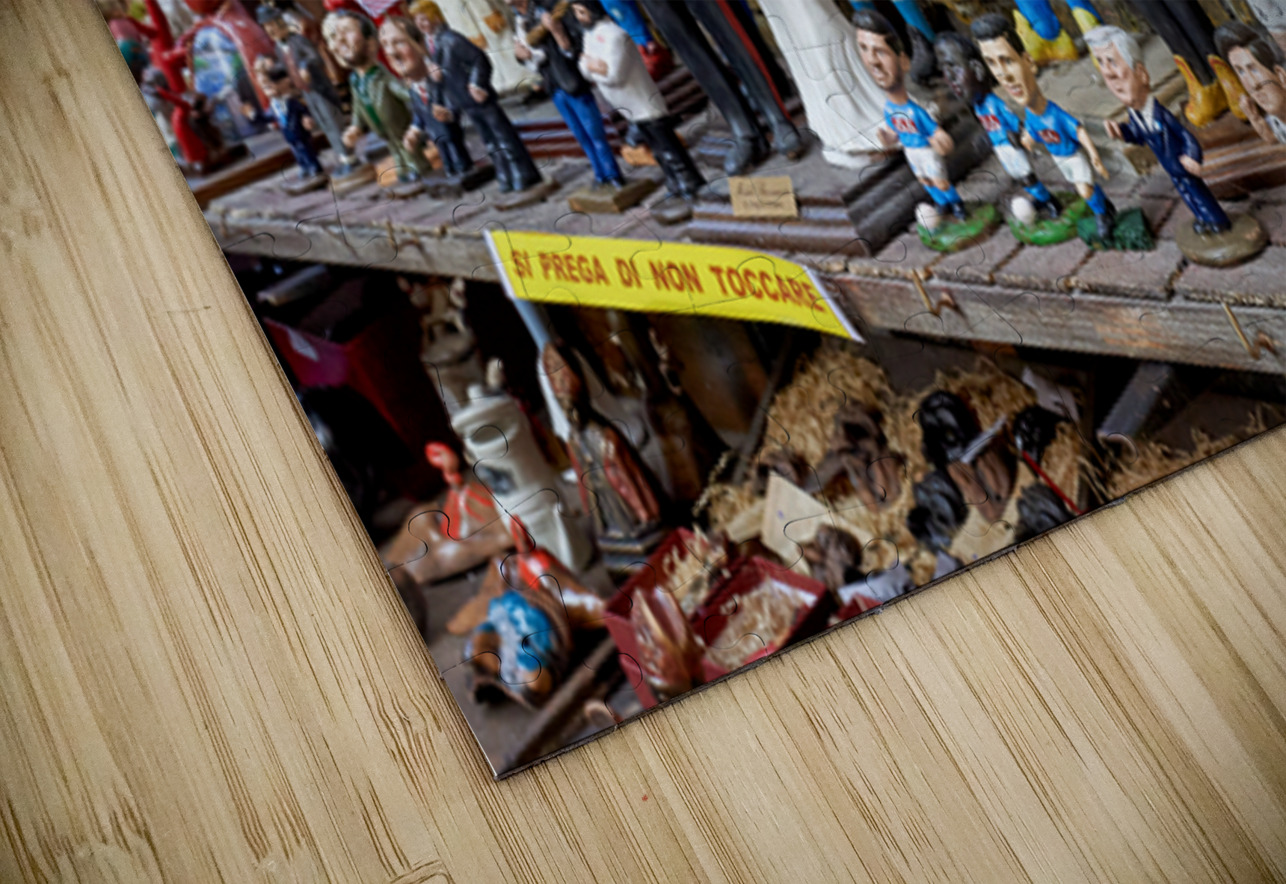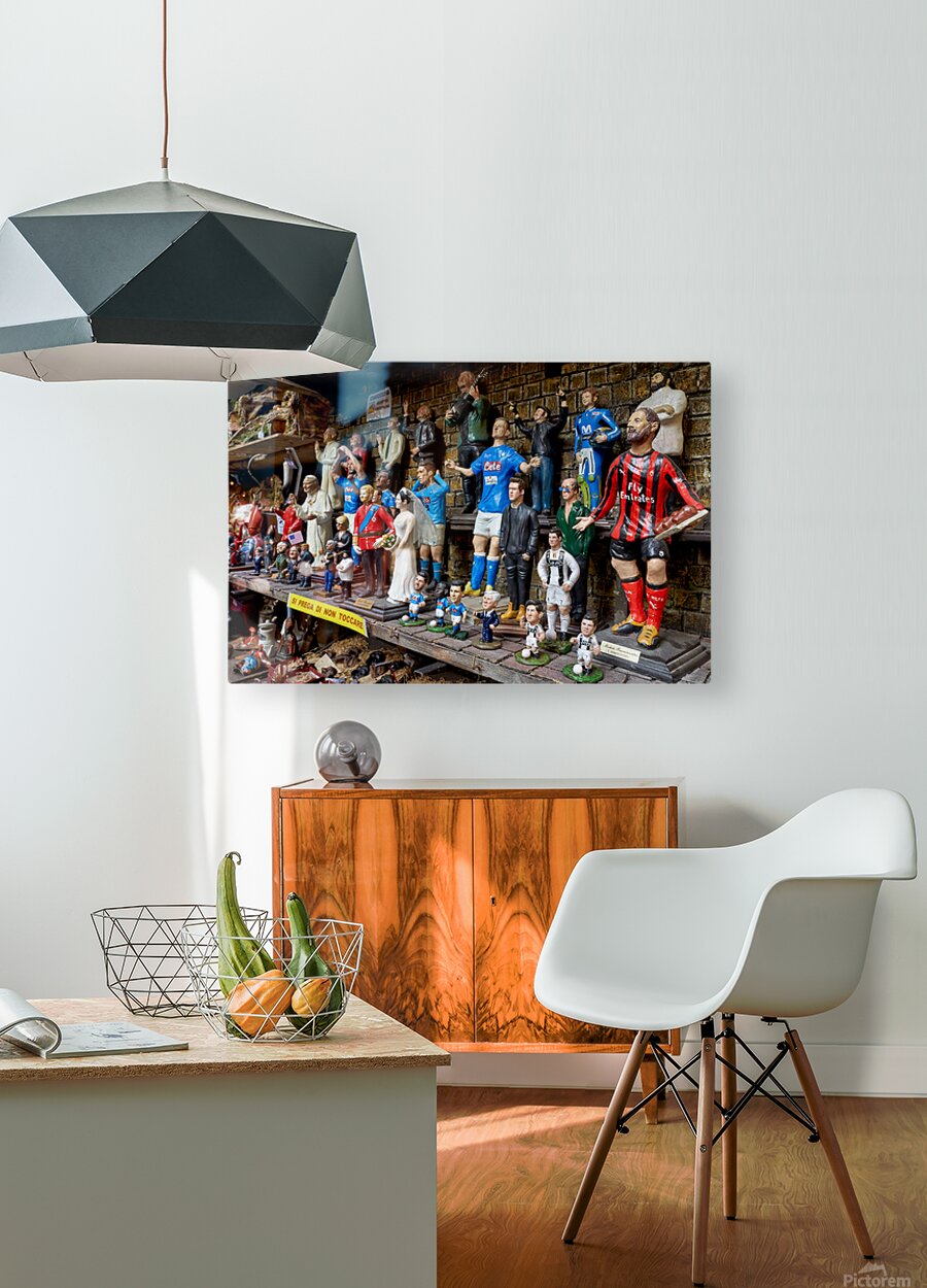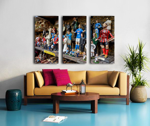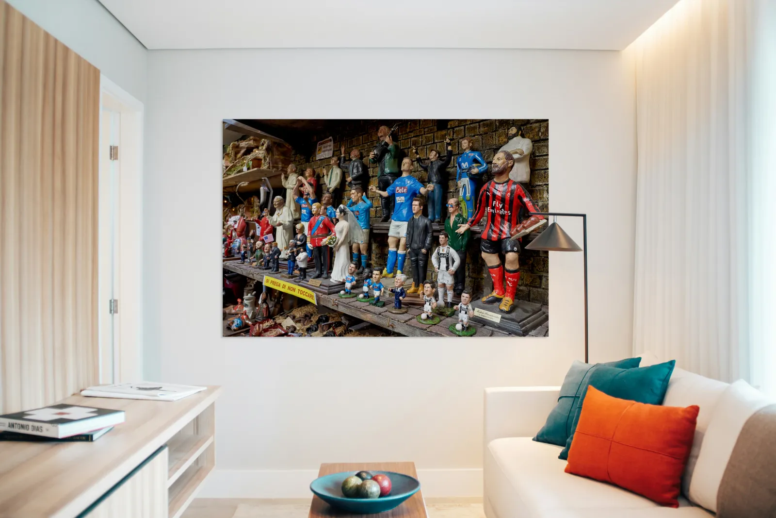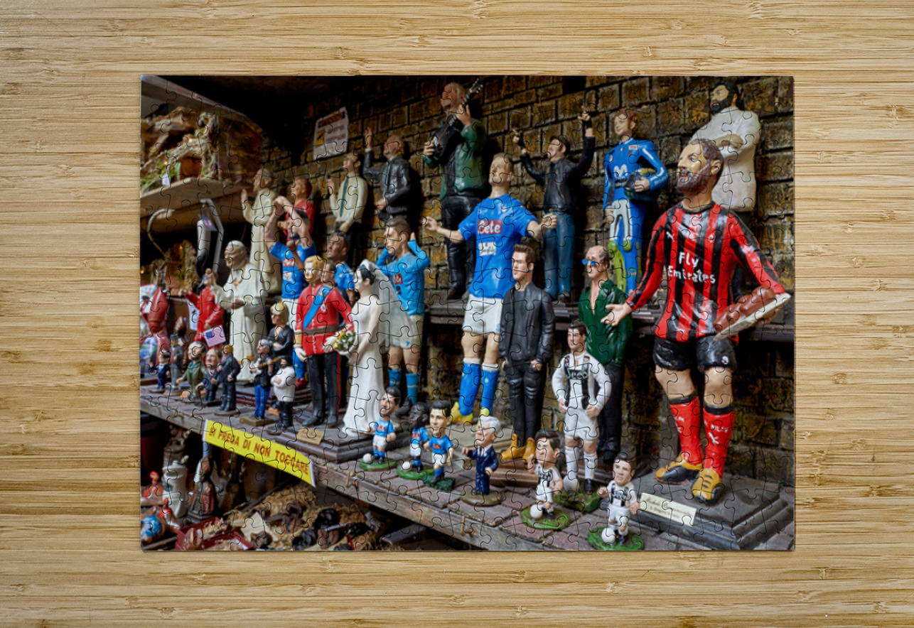 Workshops in Via San Gregorio Armeno display many nativity scene figurines. Statues include sports figures and local characters for visitors.