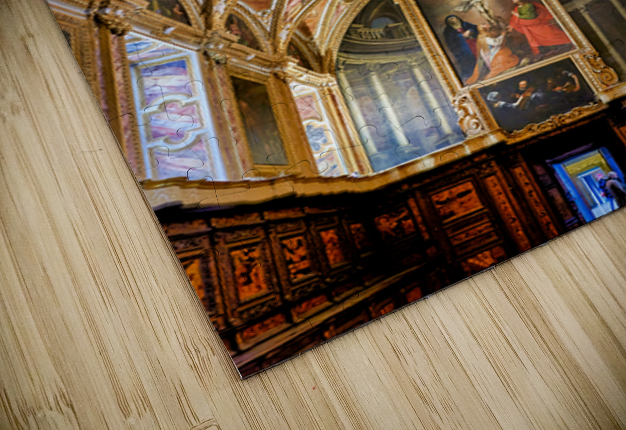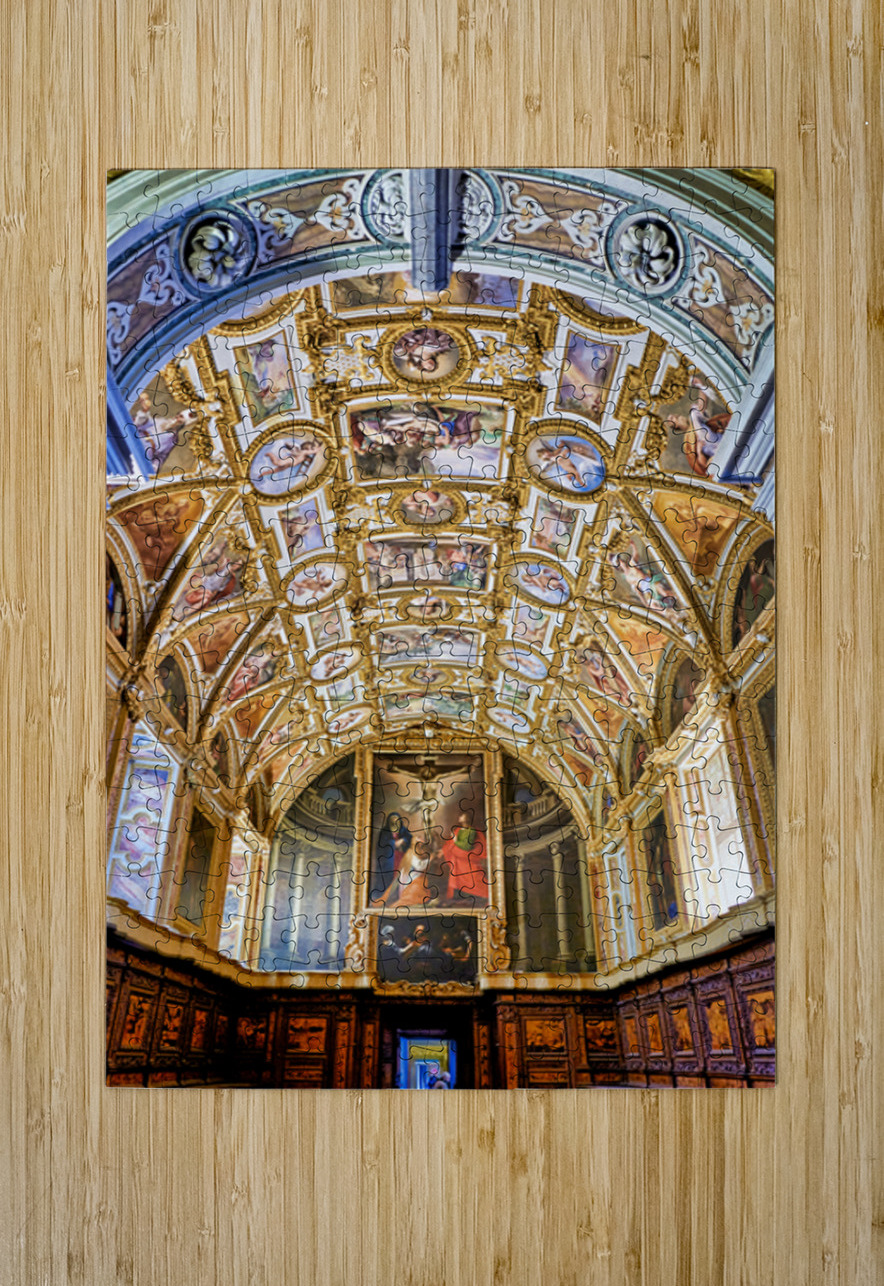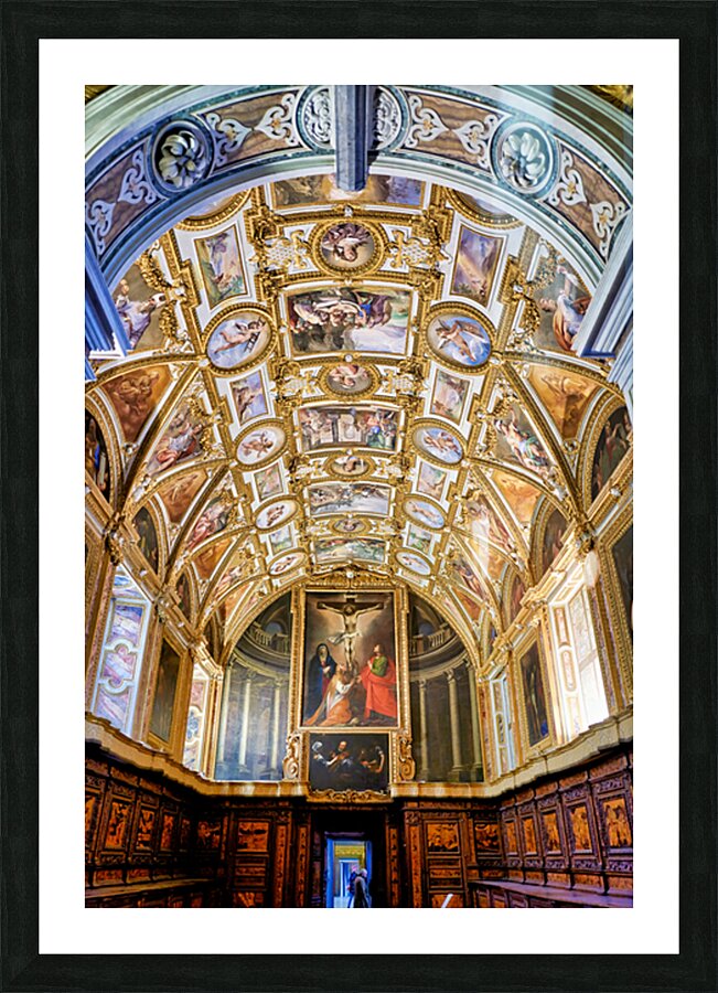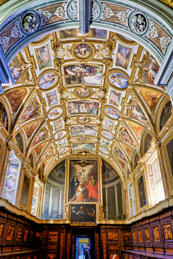 Visitors look at the ornate ceiling and impressive artwork in the Certosa di San Martino museum in Naples highlighting its historical significance.