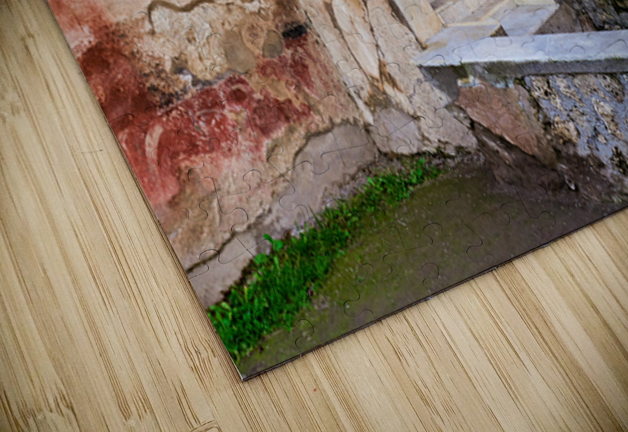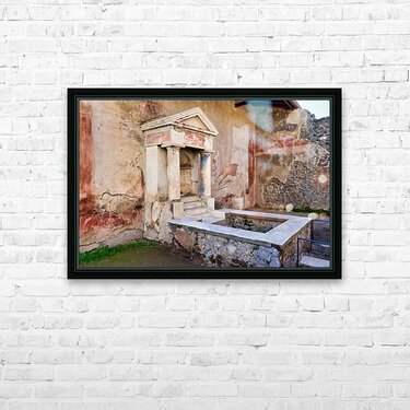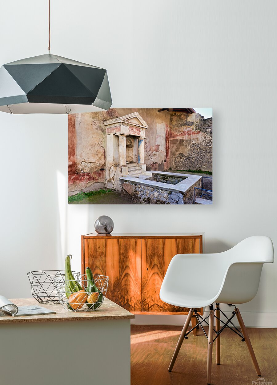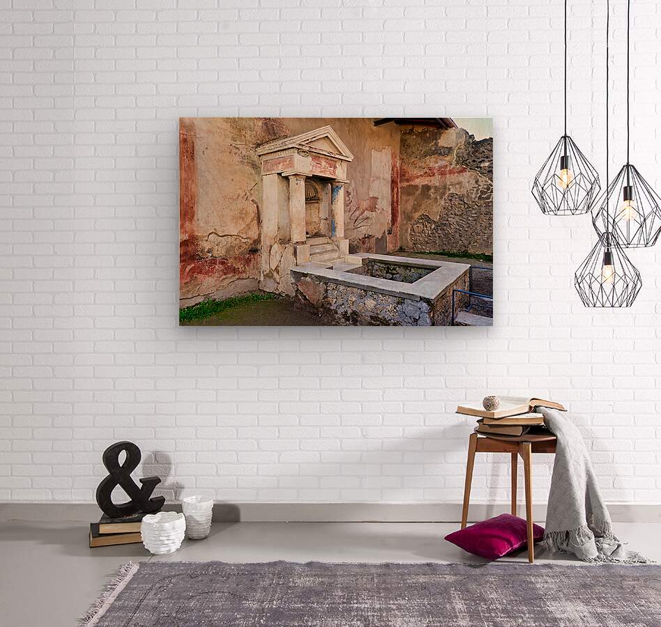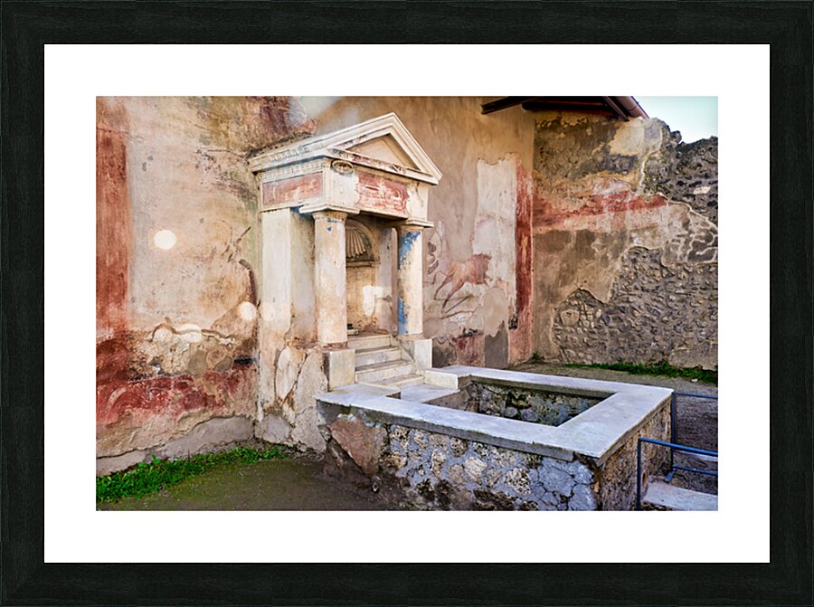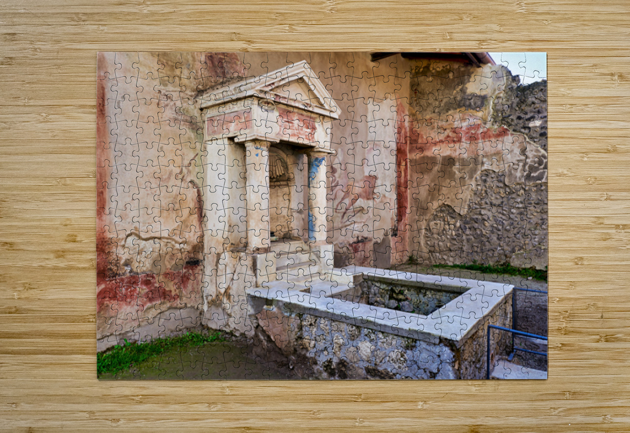 Visitors see the ancient water structure in Pompeii surrounded by old walls and colorful frescoes in Naples Italy during daytime.