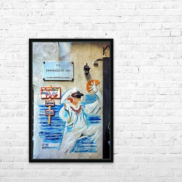 Get this artwork "Street graffiti in Quartieri Spagnoli Naples showcases local cu" in a framed print.