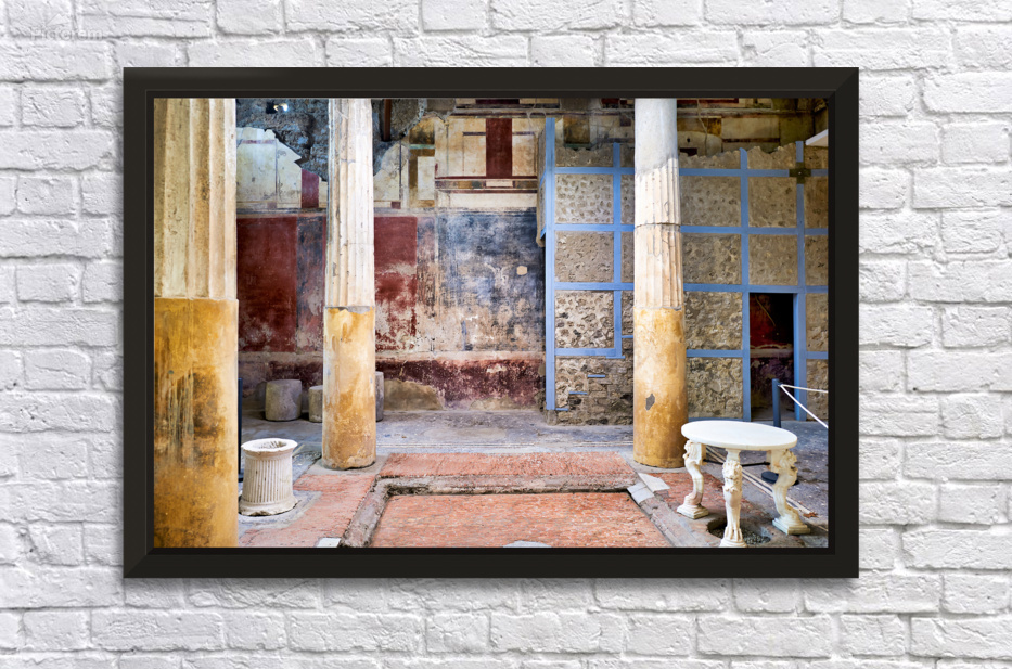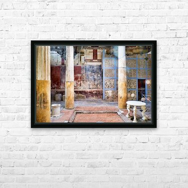 "Exploring the ruins of Pompeii in Naples Campania Italy" in a framed print.