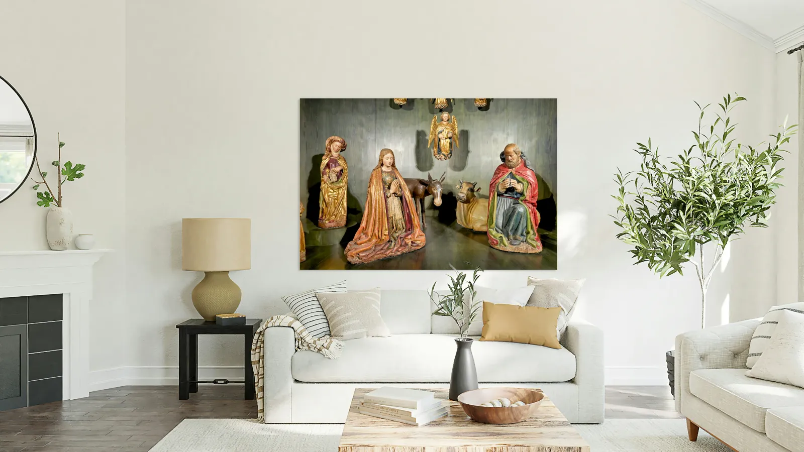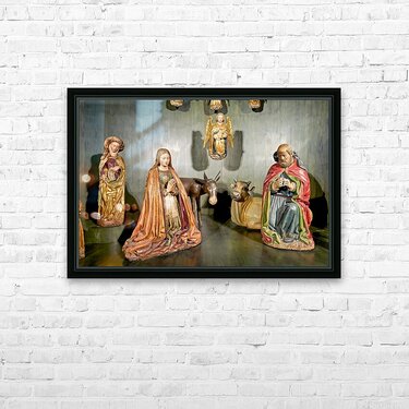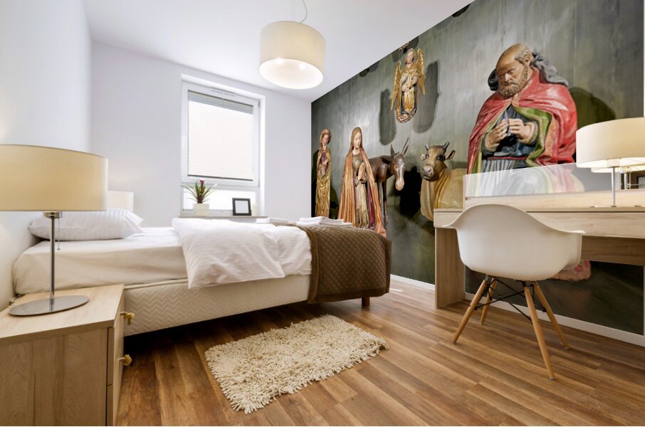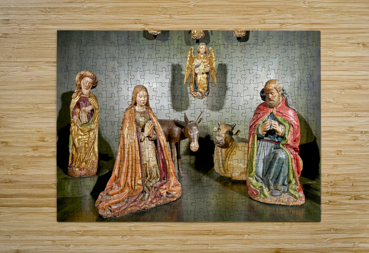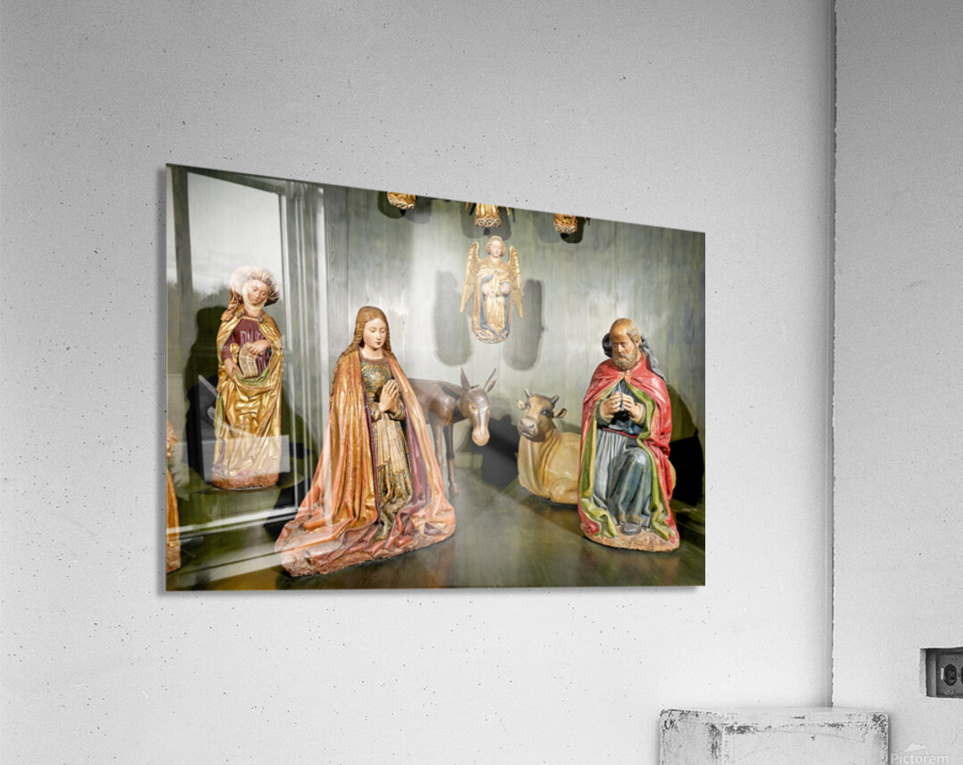 This nativity scene shows figures of Mary Joseph angels and animals set in Certosa di San Martino in Naples during the holiday season.