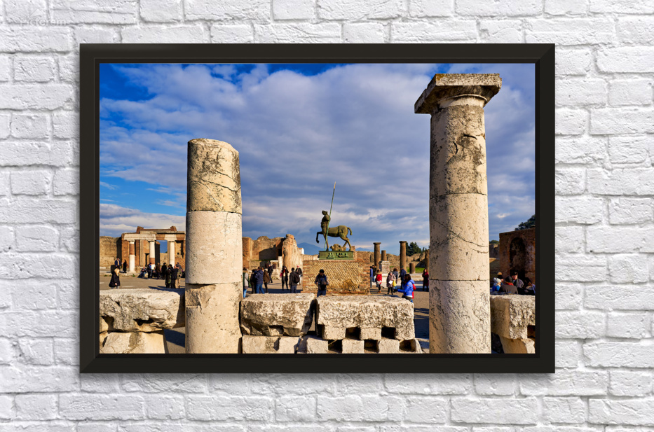 Tourists walk among ancient columns and statues in Pompeii experiencing history in Naples Campania Italy during a clear day.