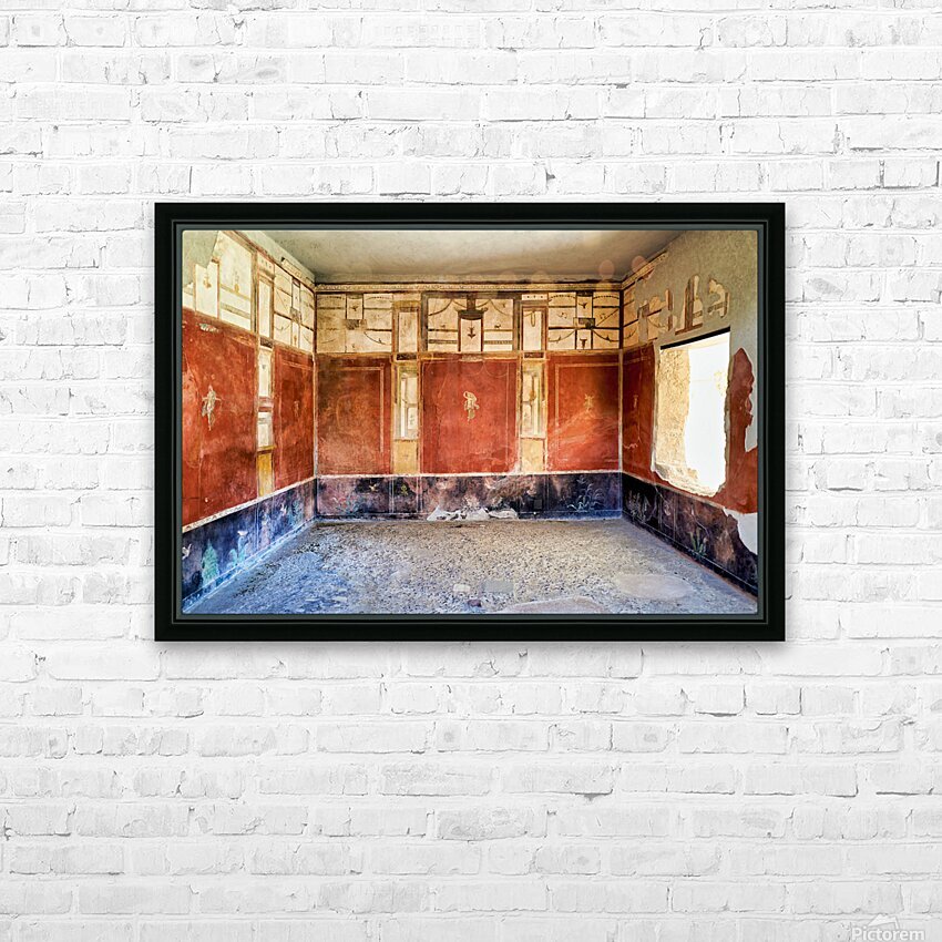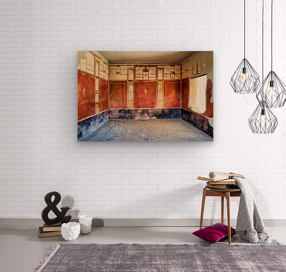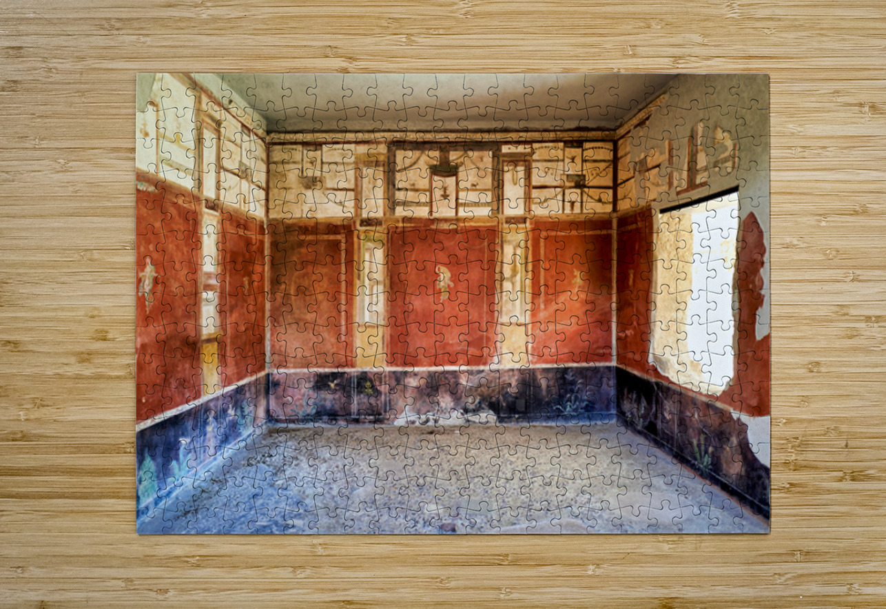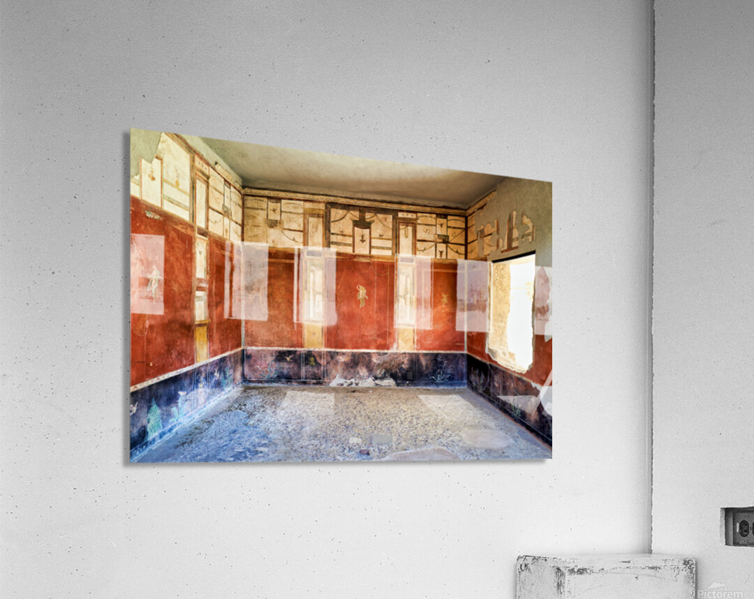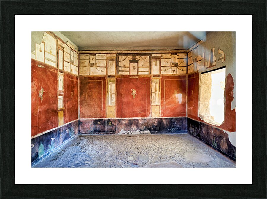 Visitors walk through a room in Pompeii viewing ancient paintings and wall designs that date back to Roman times in Italy.