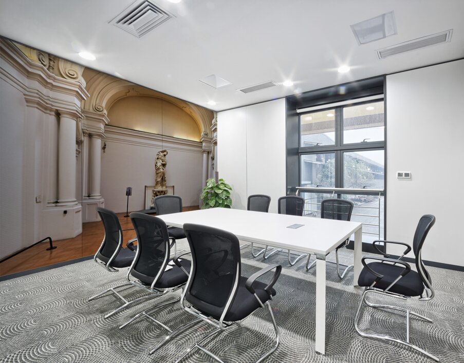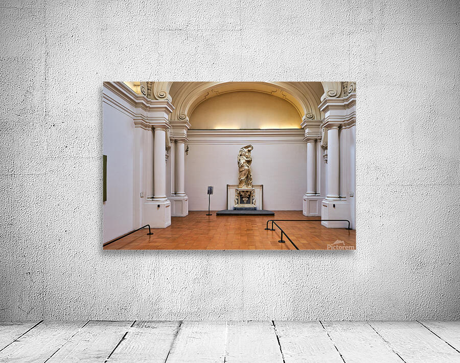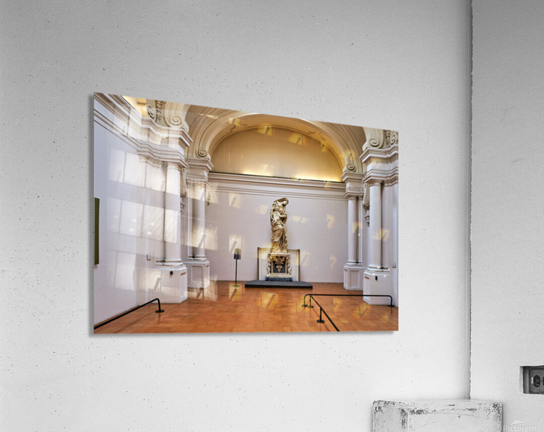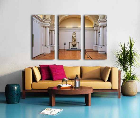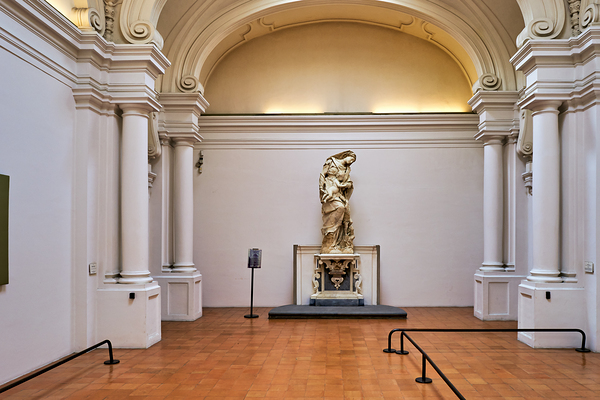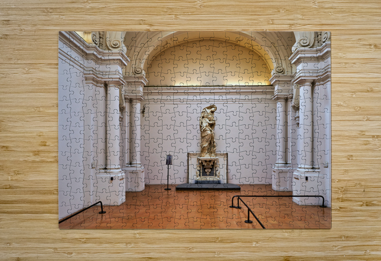 A statue stands in the center of a room in the Certosa di San Martino museum. The museum showcases historical art and items.