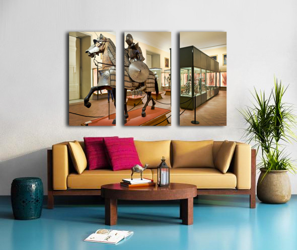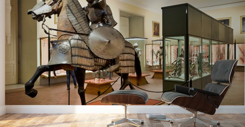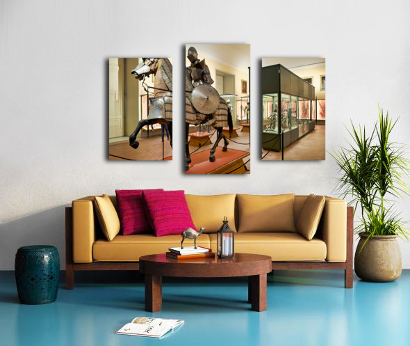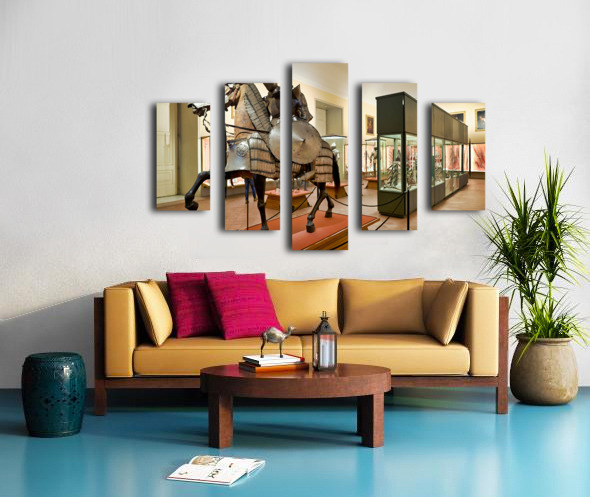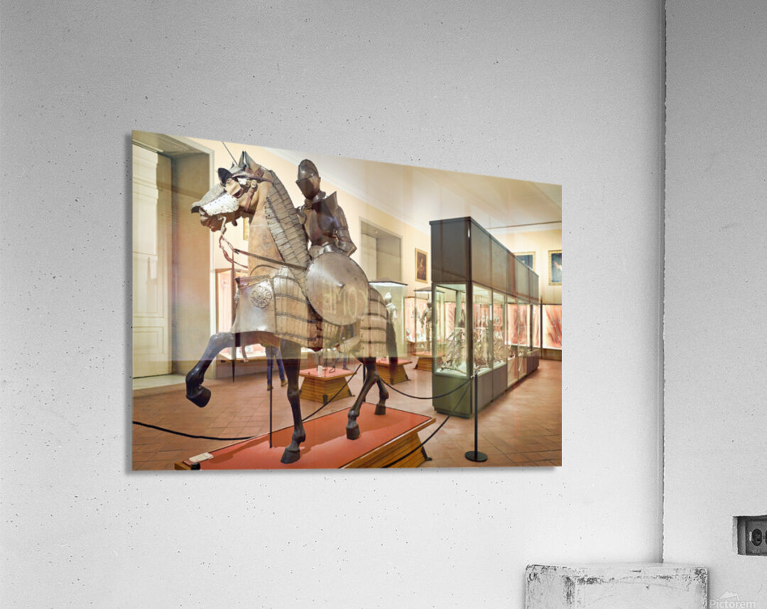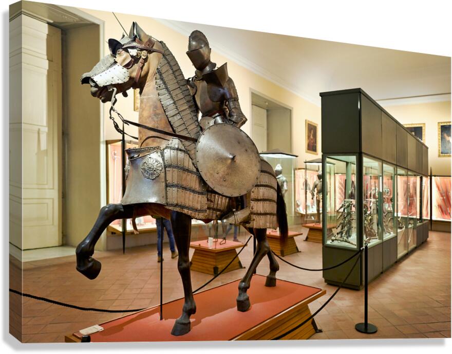 Visitors explore Museo di Capodimonte in Naples. Displays include armor and horse models. The museum showcases Italys rich art history.