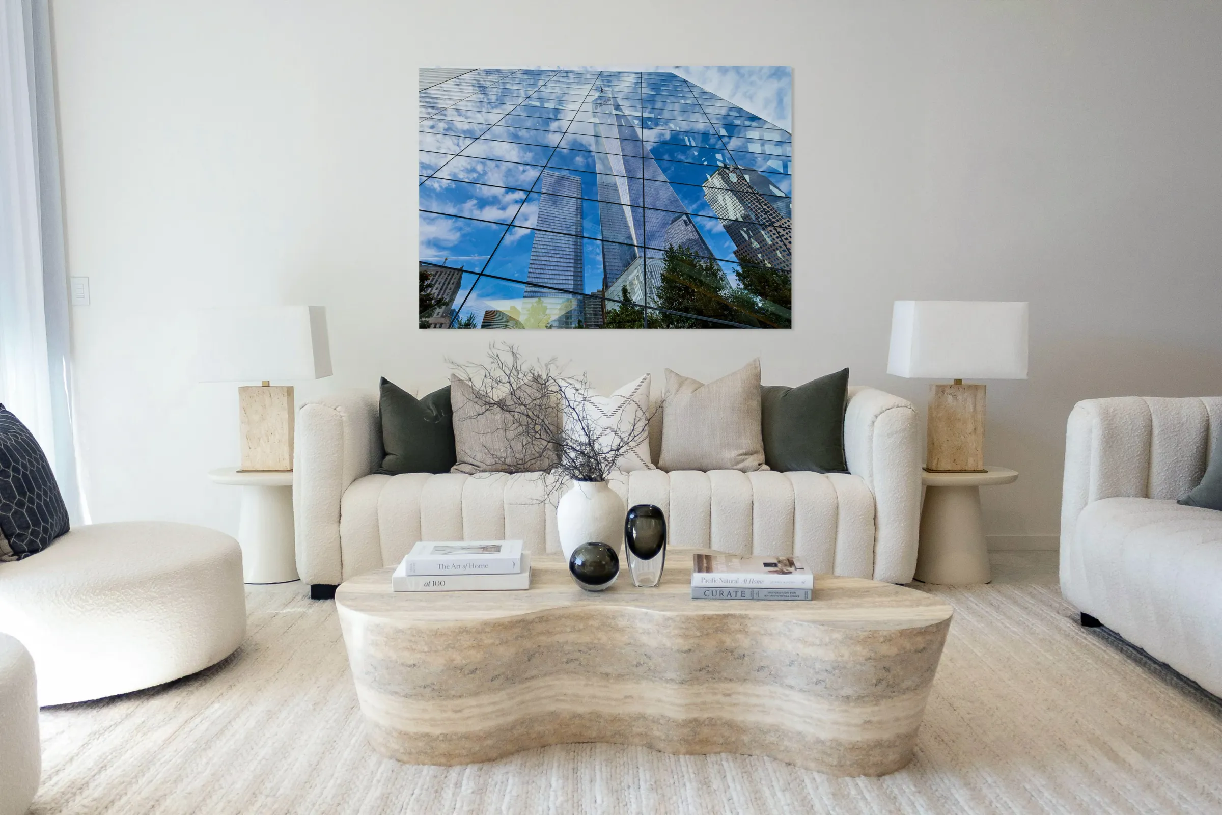 ABOUT THIS ARTWORK: REFLECTIONS OF ONE WORLD TRADE CENTER IN MANHATTAN