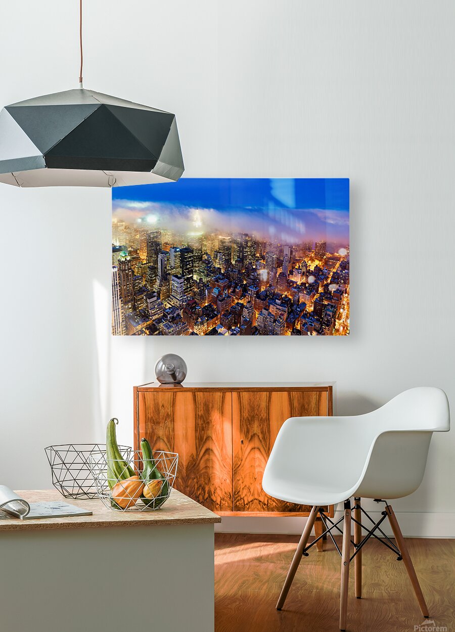 Aerial view shows Manhattan skyline at dusk with city lights Marco Brivio Puzzle printing