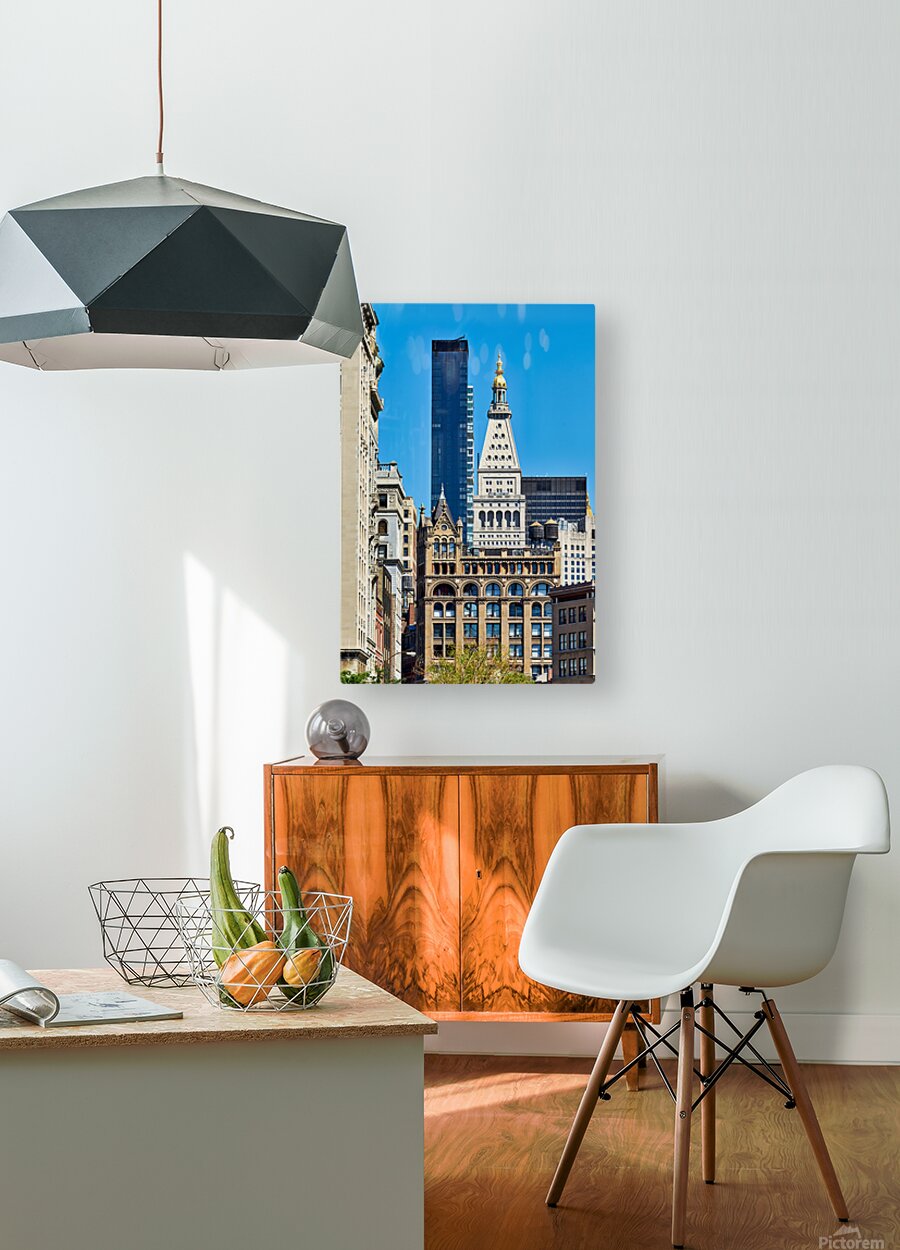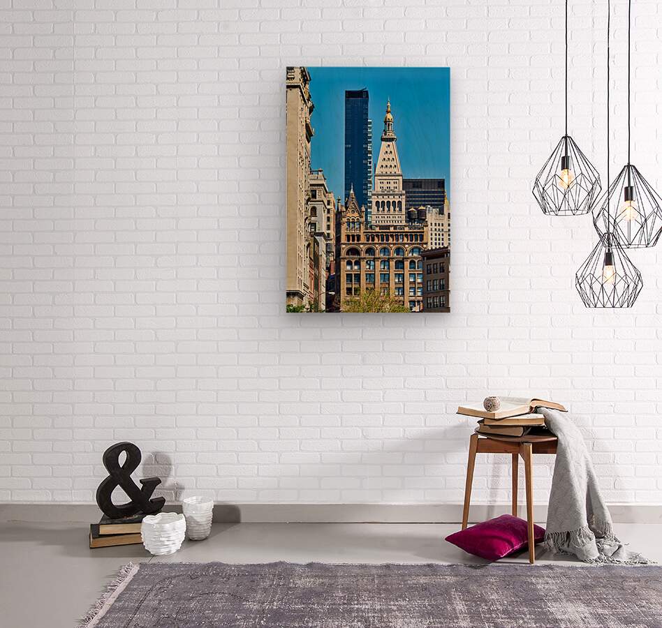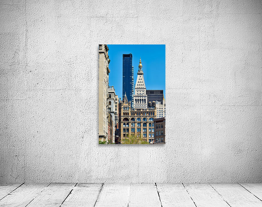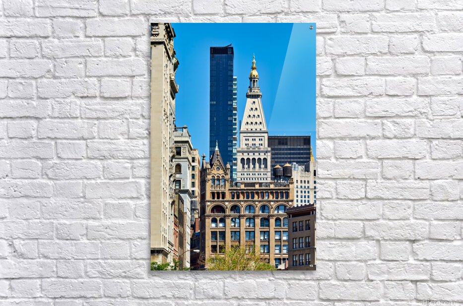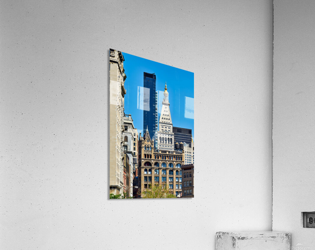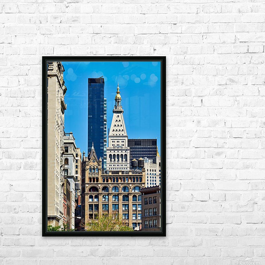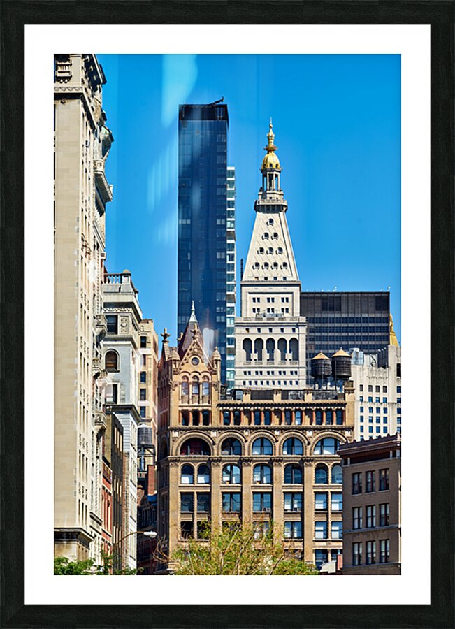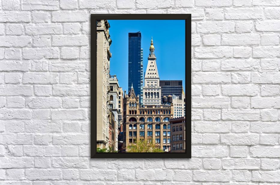"Different architecture seen in Manhattan New York City on a cle" in a framed print.