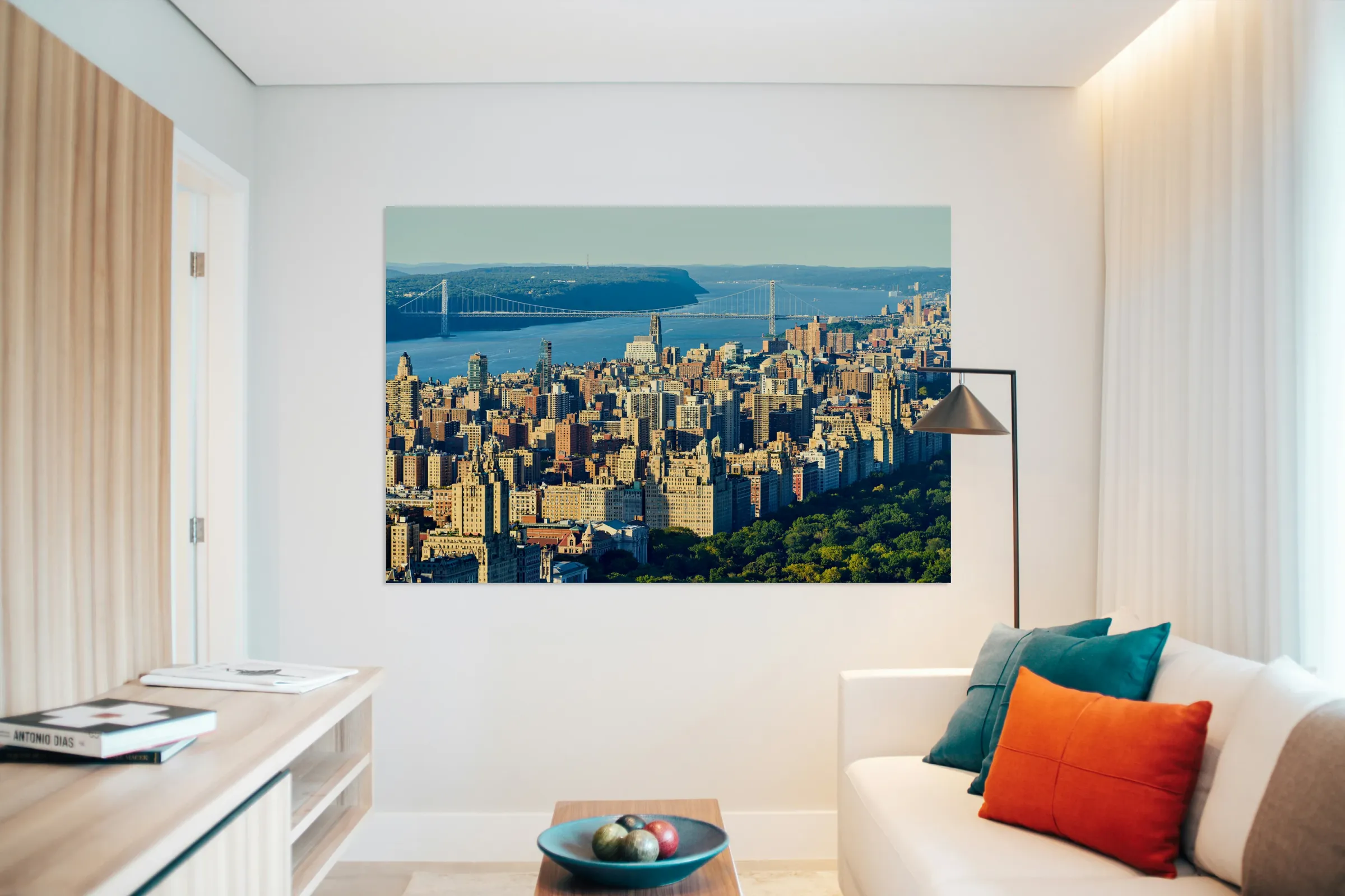 ABOUT THIS ARTWORK: VIEW OF UPPER WEST SIDE AND GEORGE WASHINGTON BRIDGE IN MANHATTA