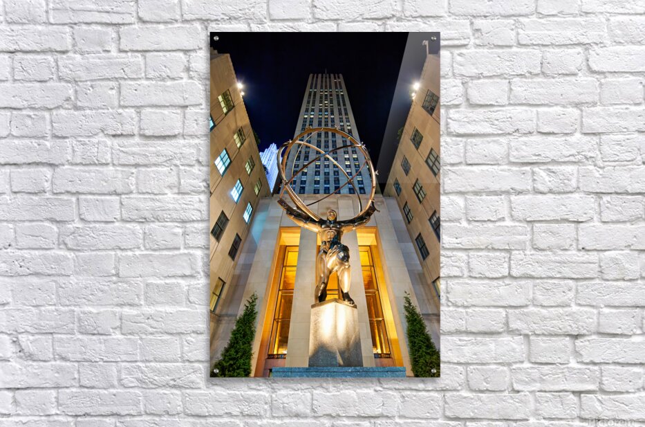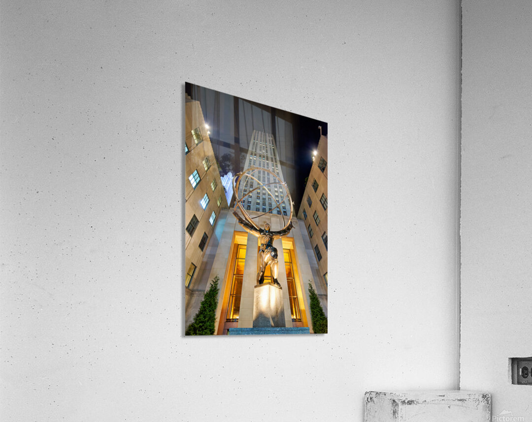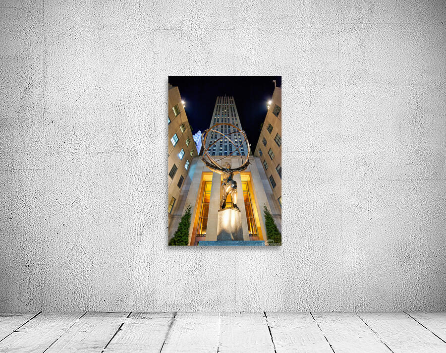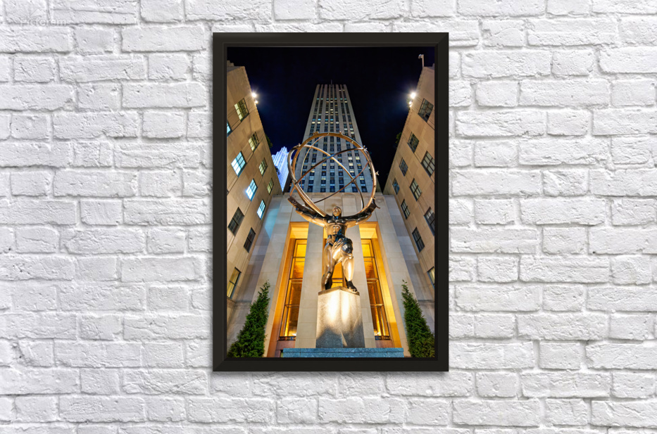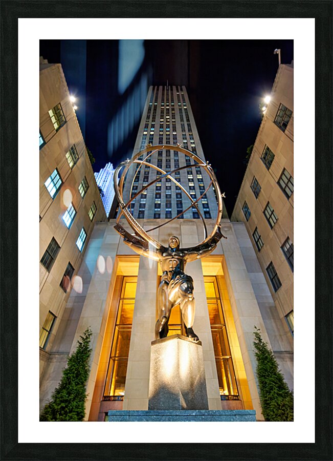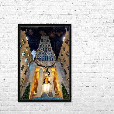 "Statue of atlas at rockefeller center in manhattan new york" in a framed print.