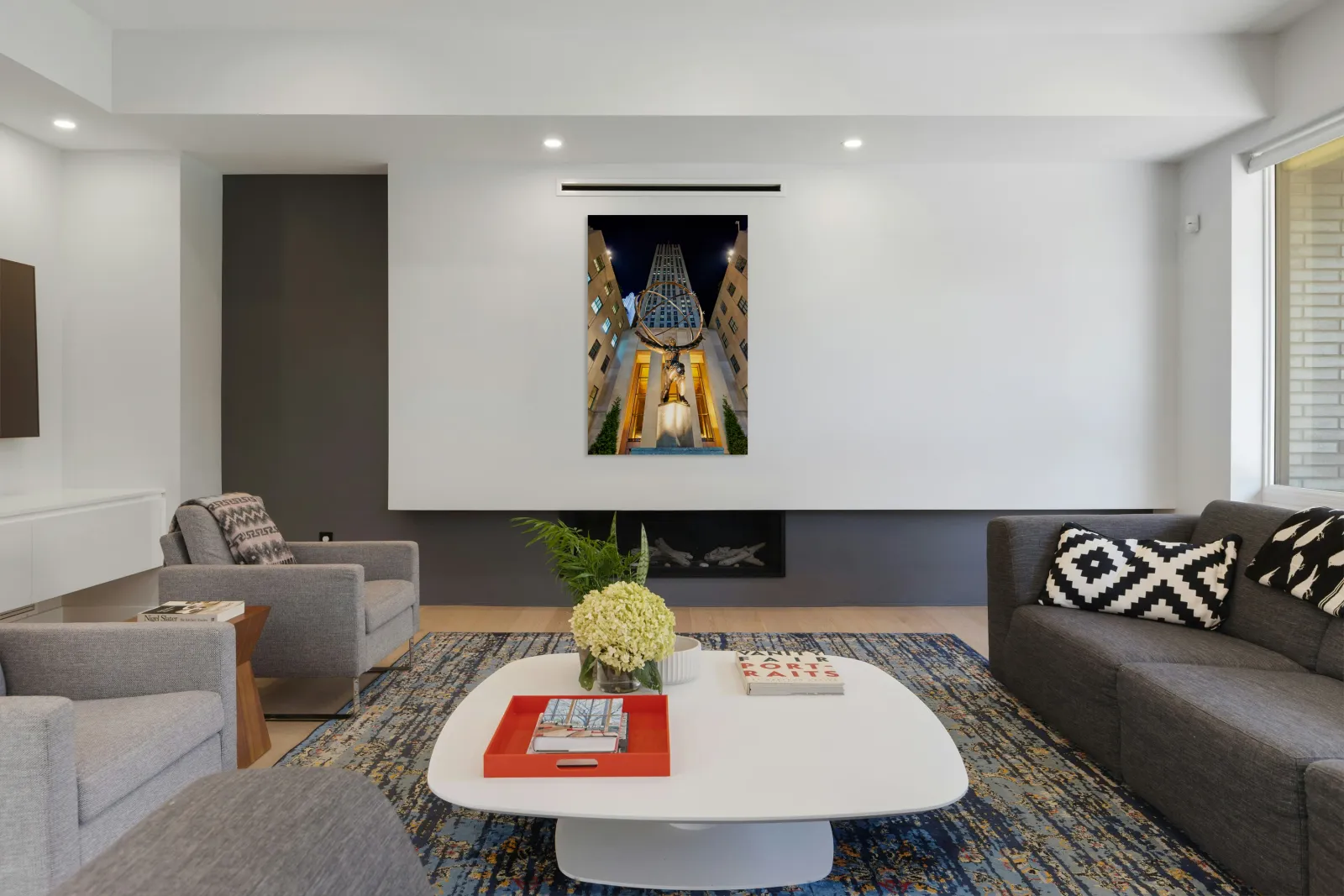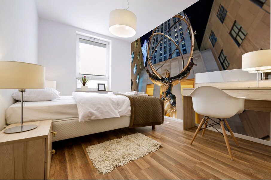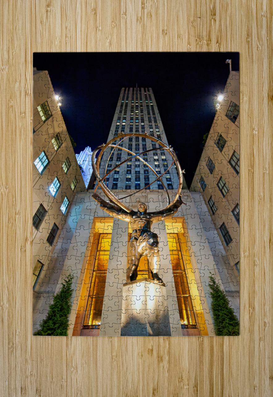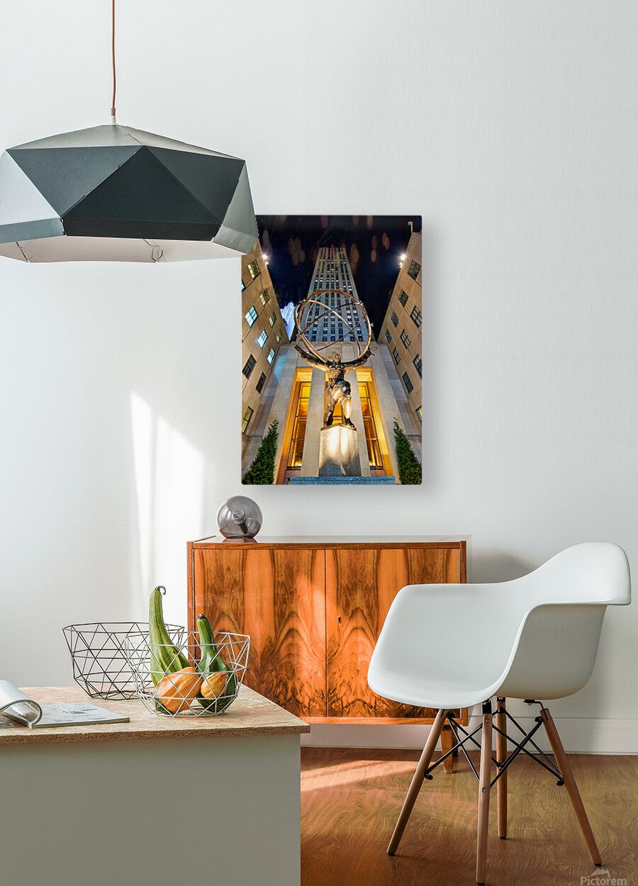 "Statue of atlas at rockefeller center in manhattan new york" in a framed print.