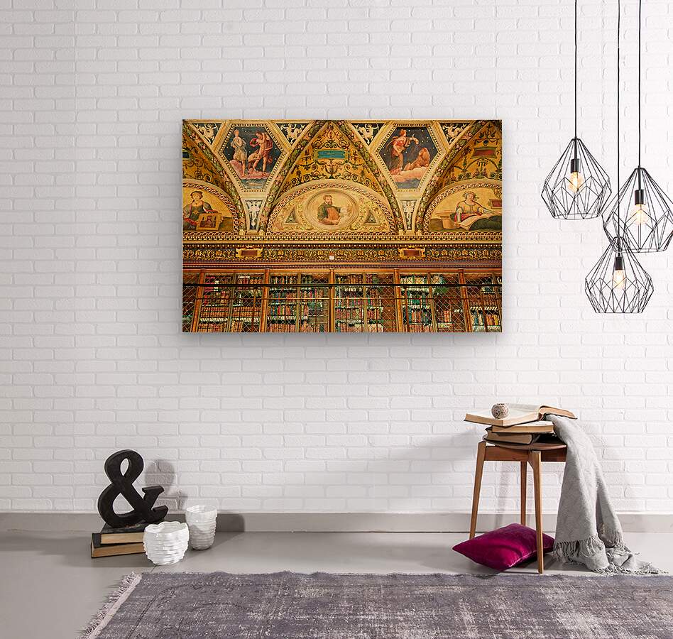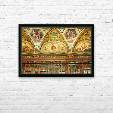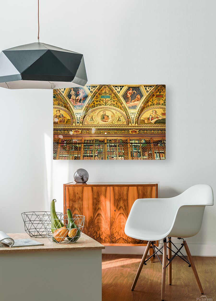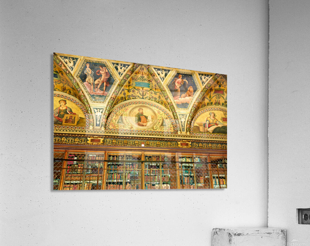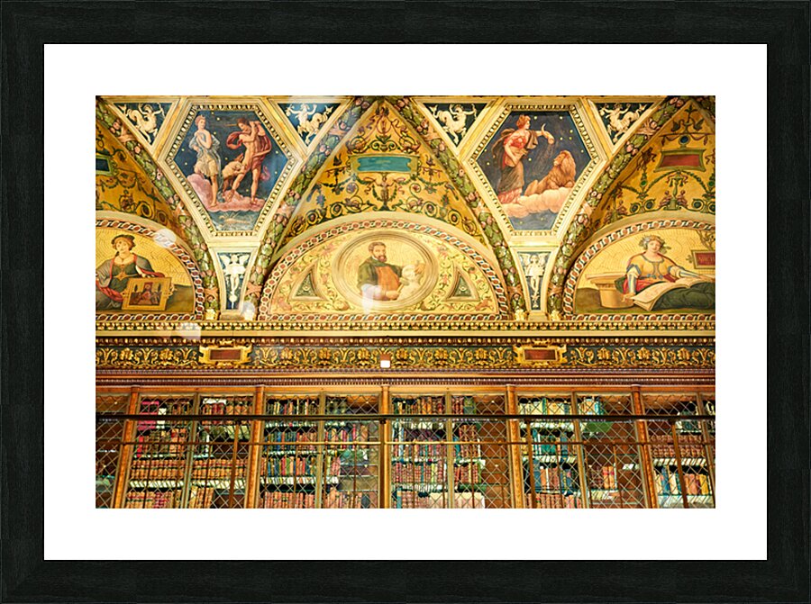 "Art and books displayed in the Morgan Library and Museum in Manh" in a framed print.