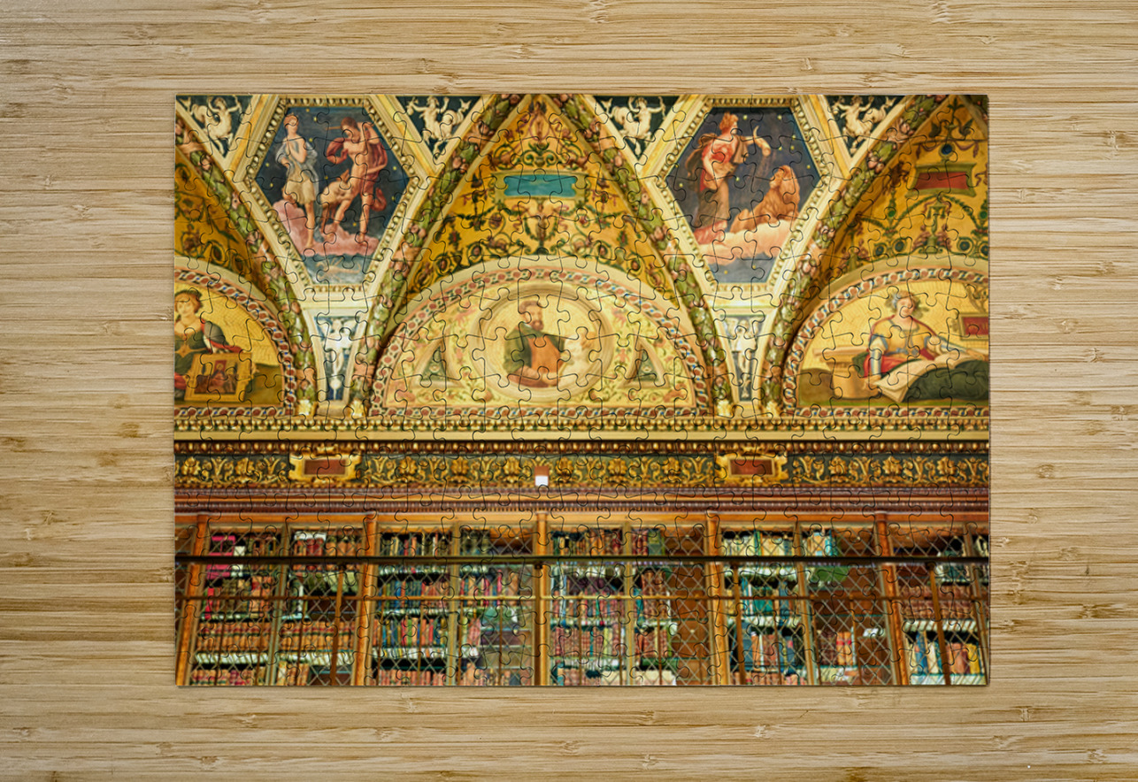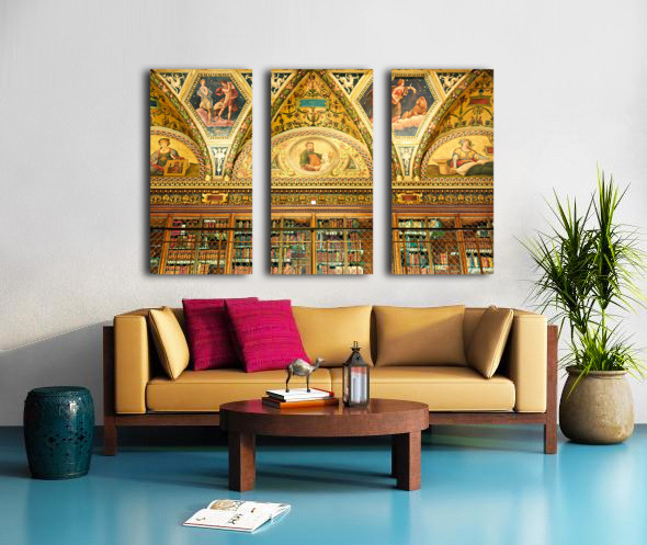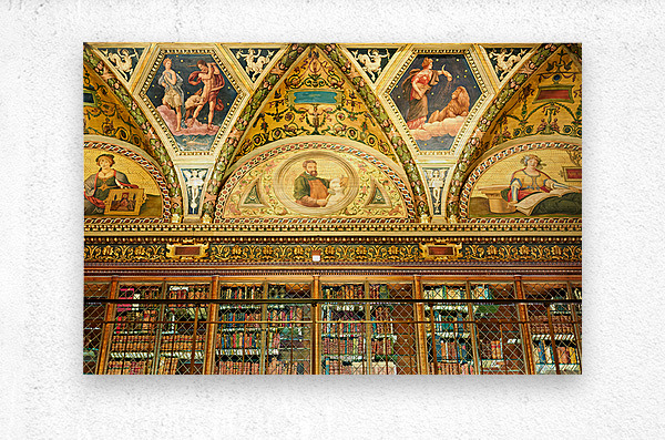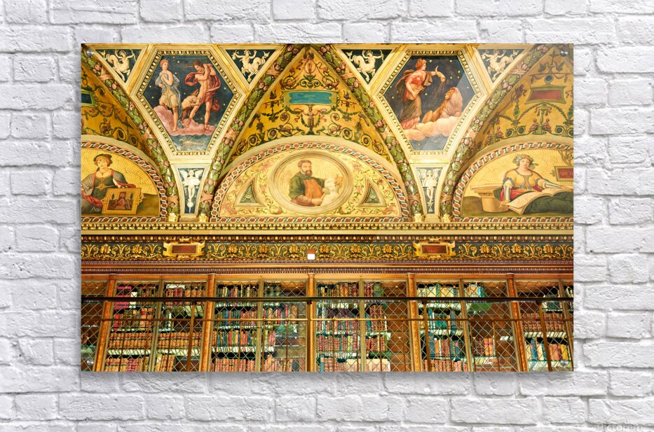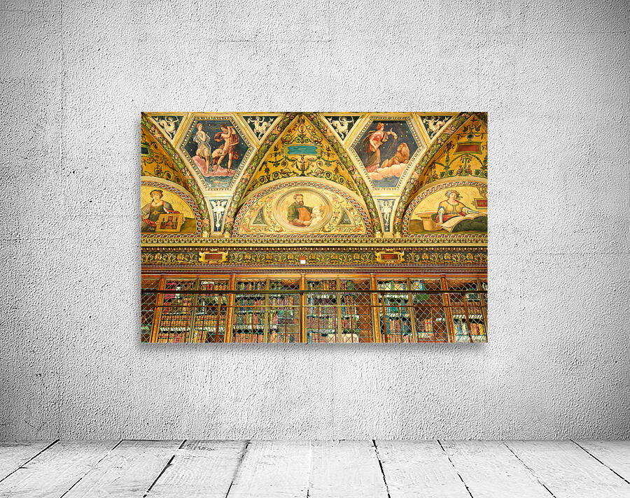 "Art and books displayed in the Morgan Library and Museum in Manh" in a framed print.