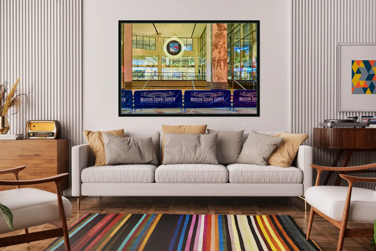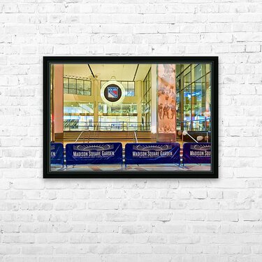 "Madison Square Garden entrance in Manhattan New York" in a framed print.