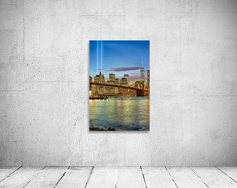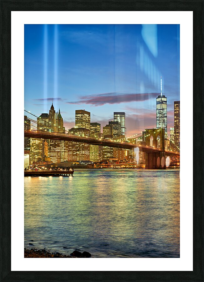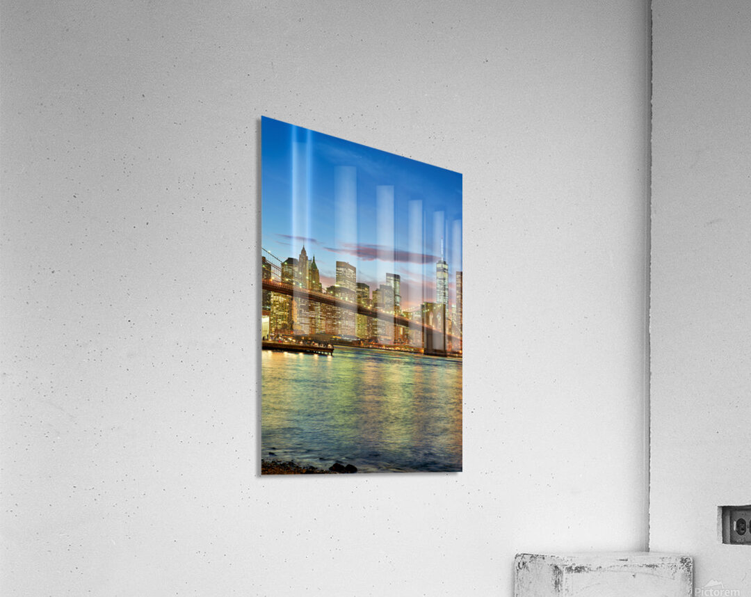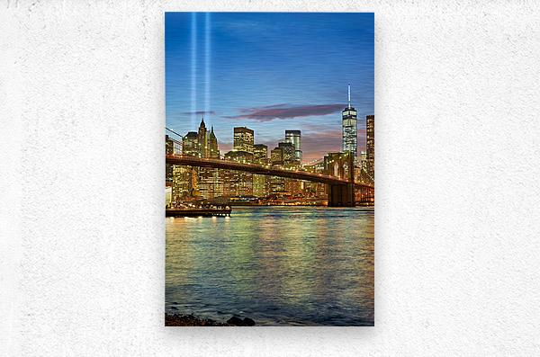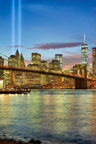 Two beams of light rise into the sky from lower Manhattan honoring the September 11 attacks.
