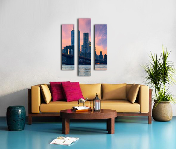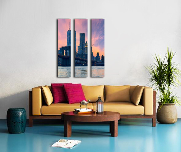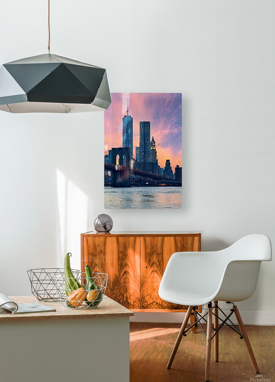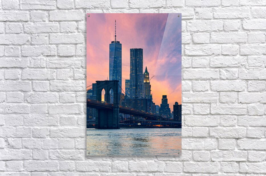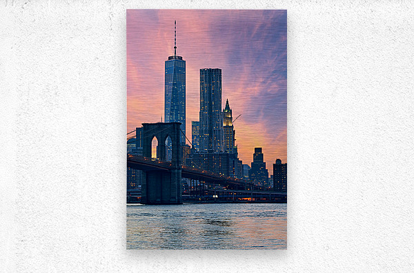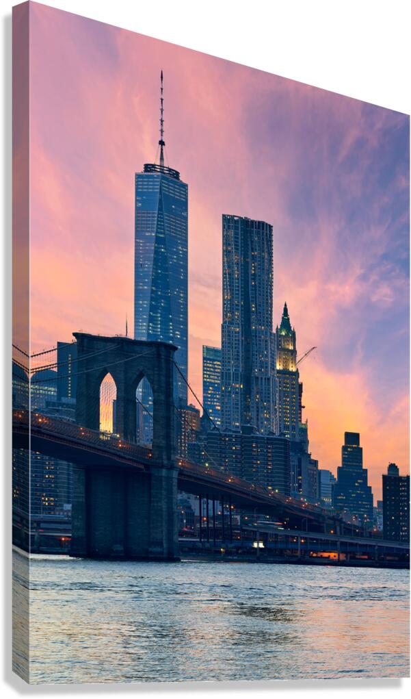 ABOUT THIS ARTWORK: BROOKLYN BRIDGE AND MANHATTAN SKYLINE DURING SUNSET IN NEW YORK