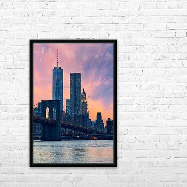 Brooklyn Bridge and Manhattan skyline during sunset in New York Picture Frame Printing