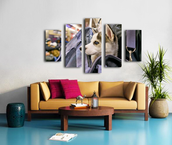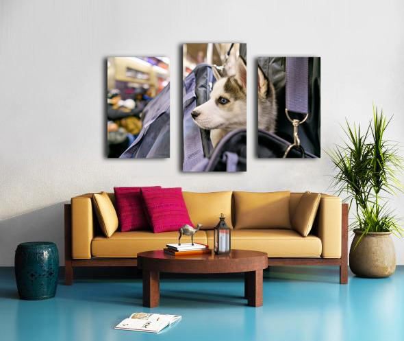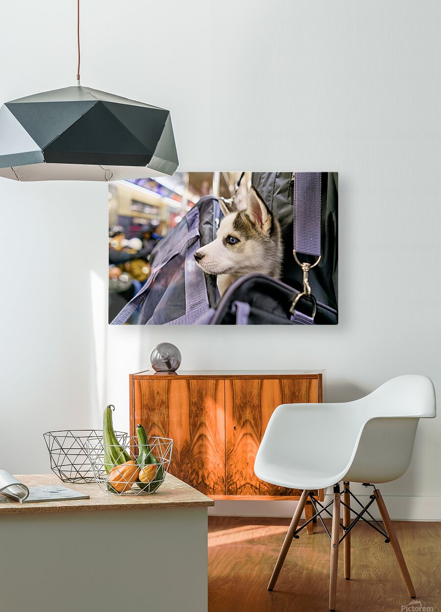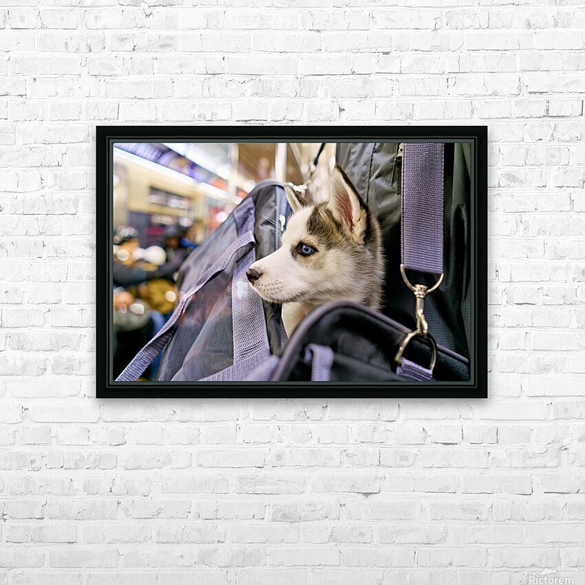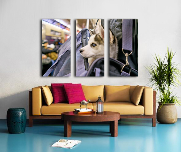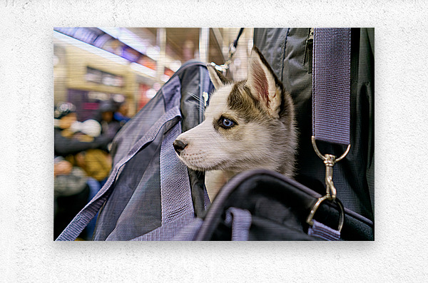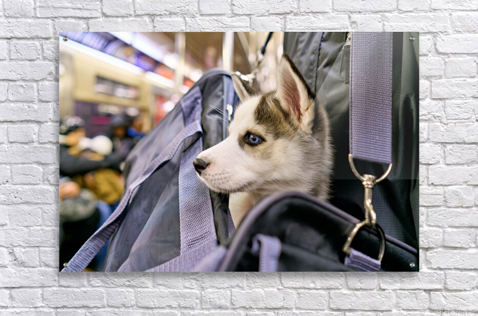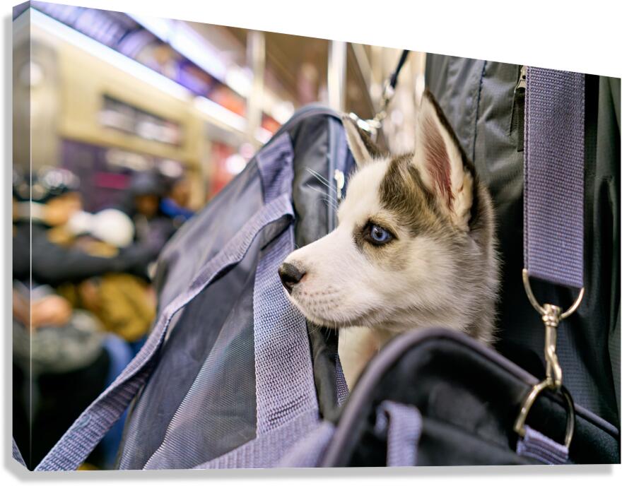 Get this artwork "Dog riding in bag on subway in Manhattan New York City" in a framed print.