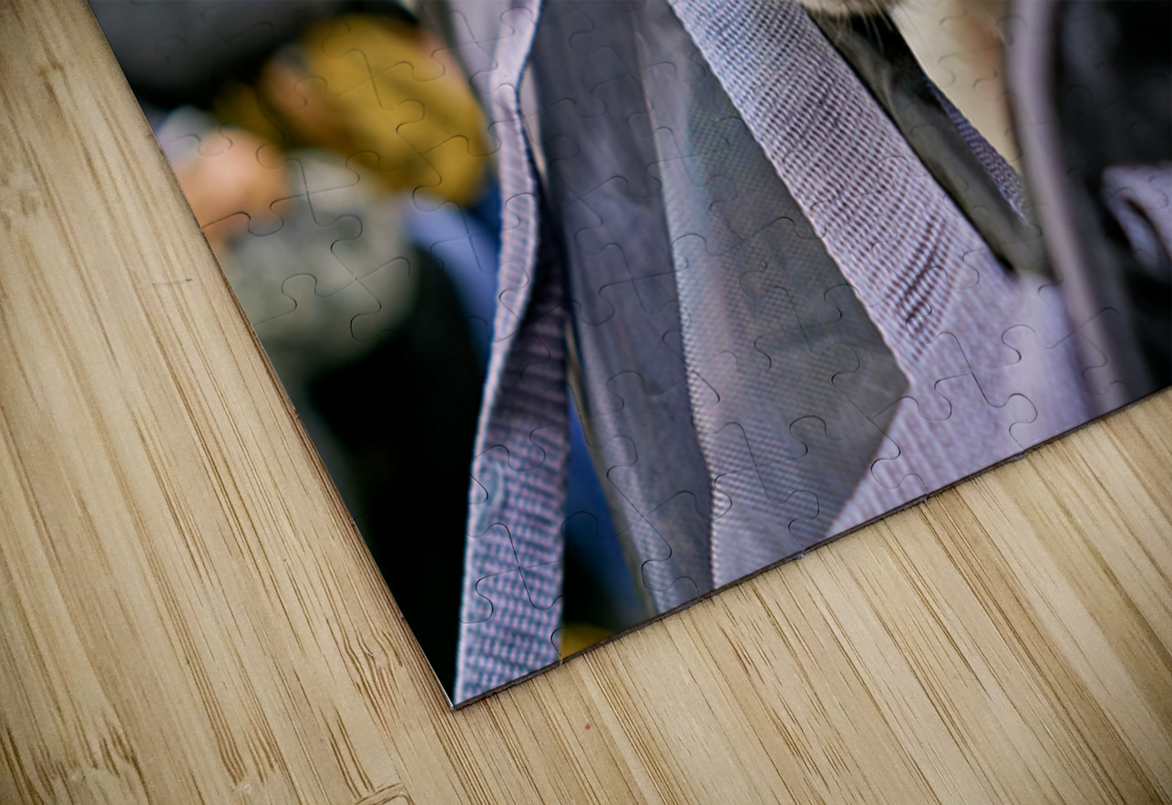 Dog riding in bag on subway in Manhattan New York City Marco Brivio Puzzle printing