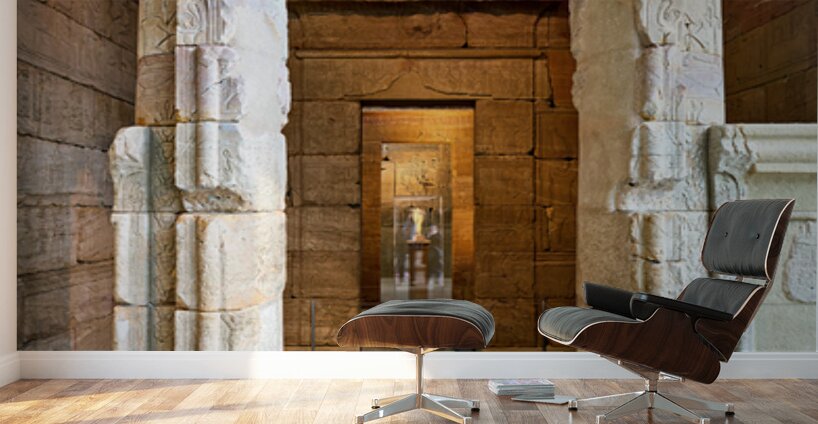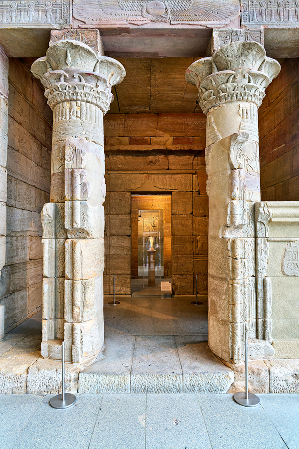 Visitors explore the Temple of Dendur inside the Metropolitan Museum of Art in Manhattan. Ancient Egyptian art and architecture are displayed.
