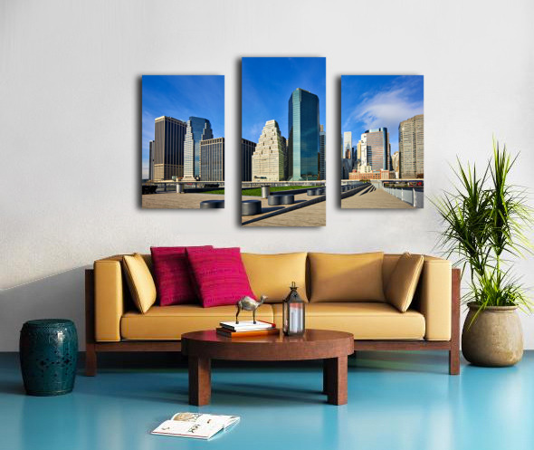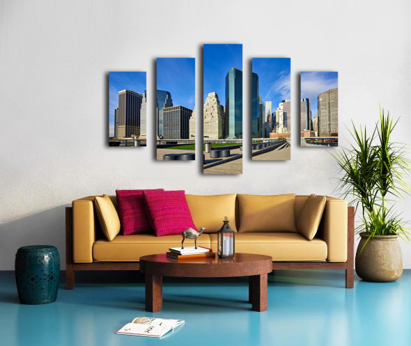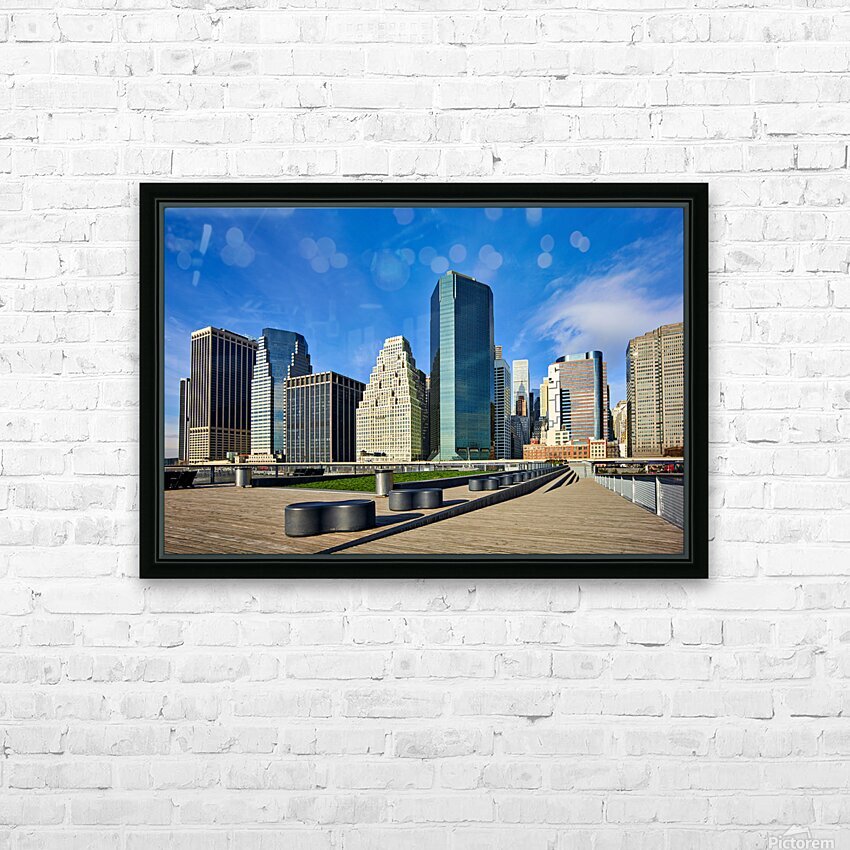 Manhattan skyline view with skyscrapers and waterfront area Frame print