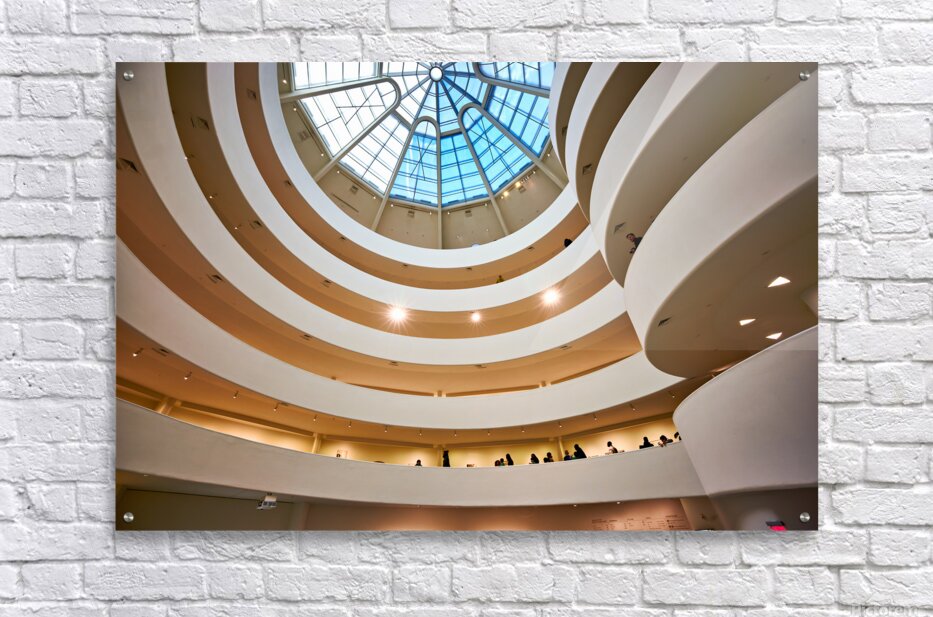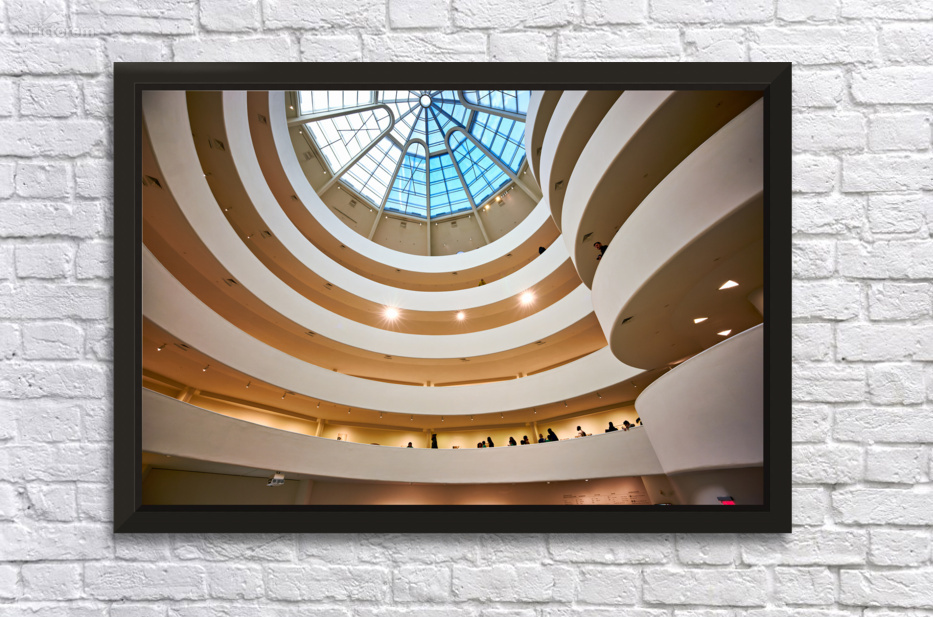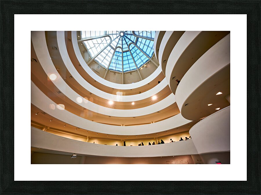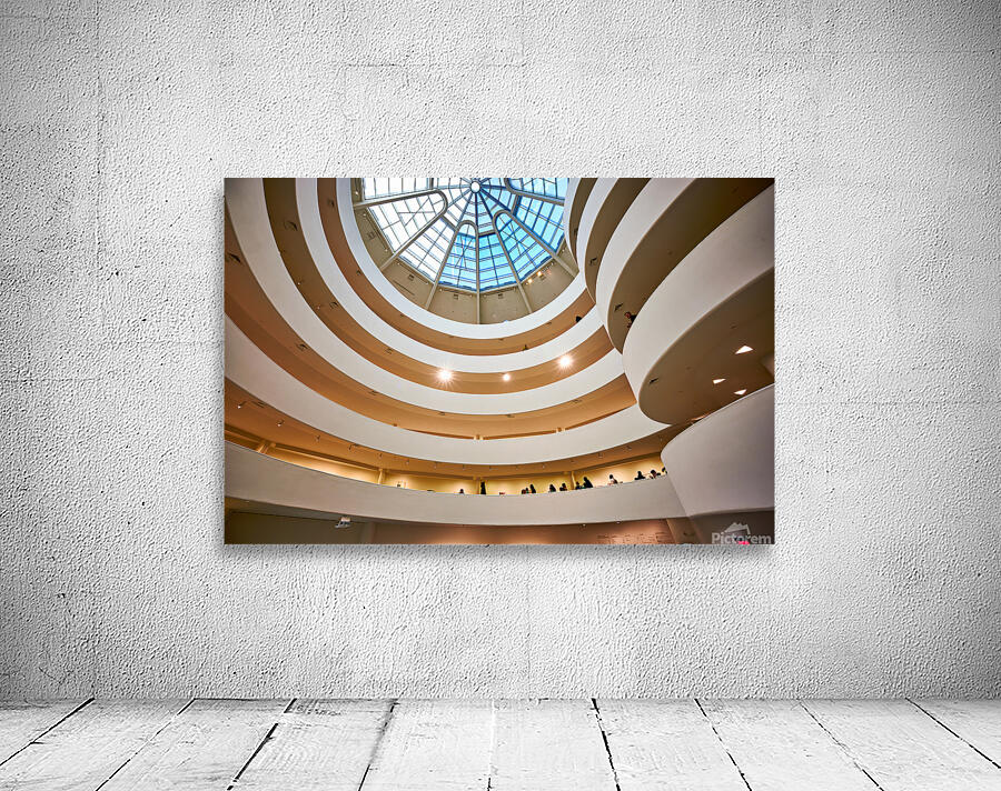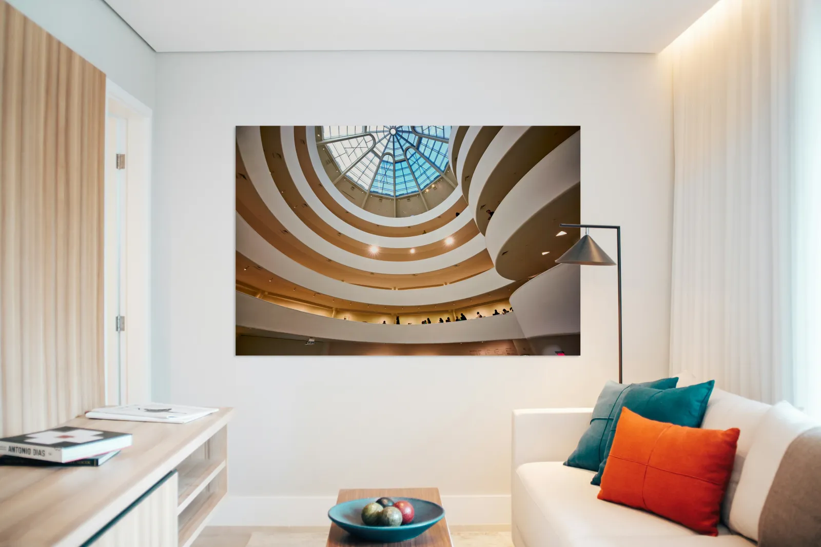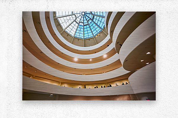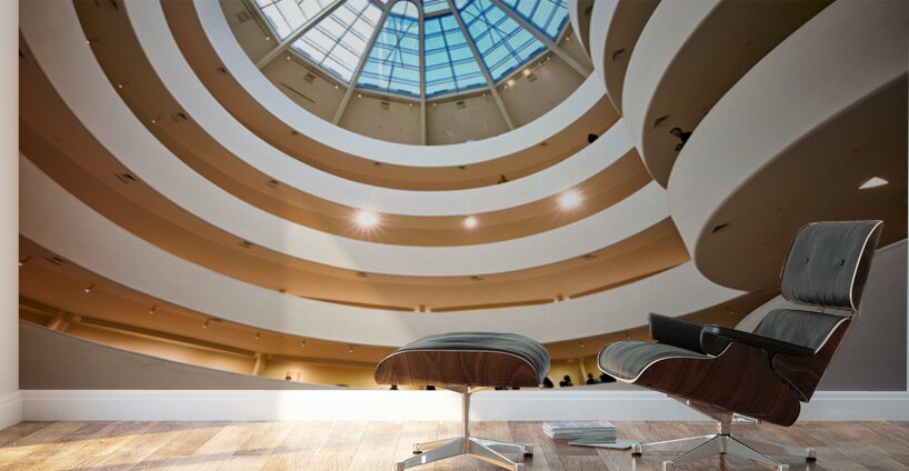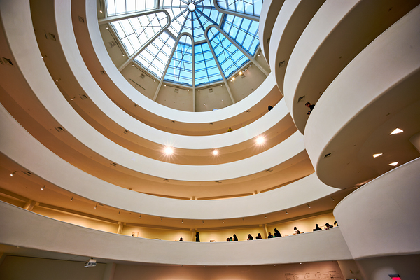 People walk along the spiral ramps of the Solomon R. Guggenheim Museum in Manhattan. The unique architecture draws attention.