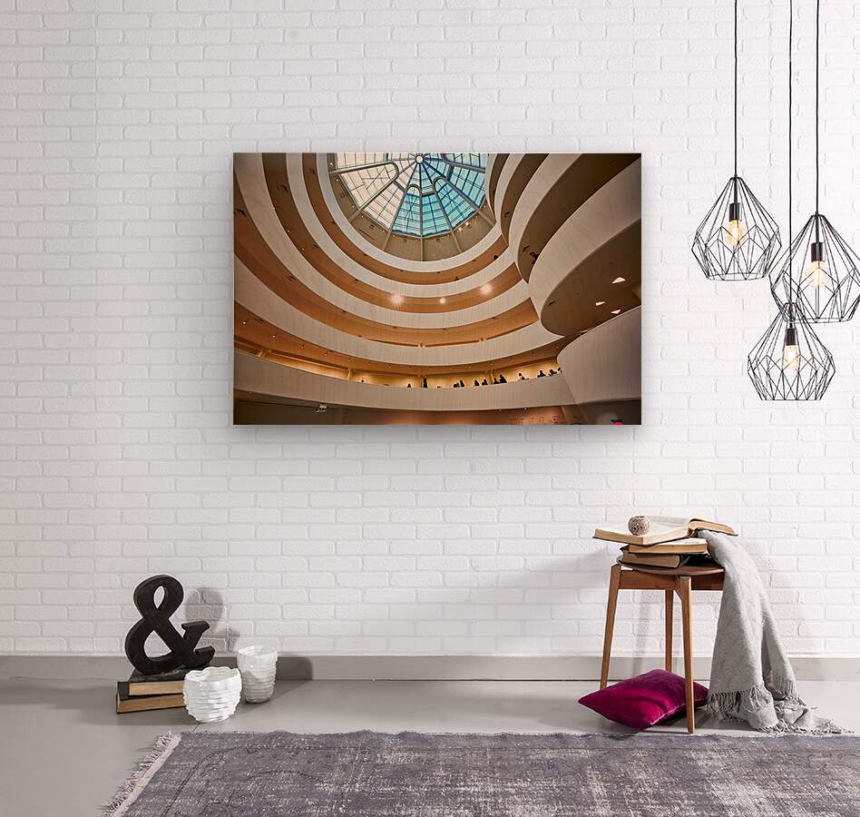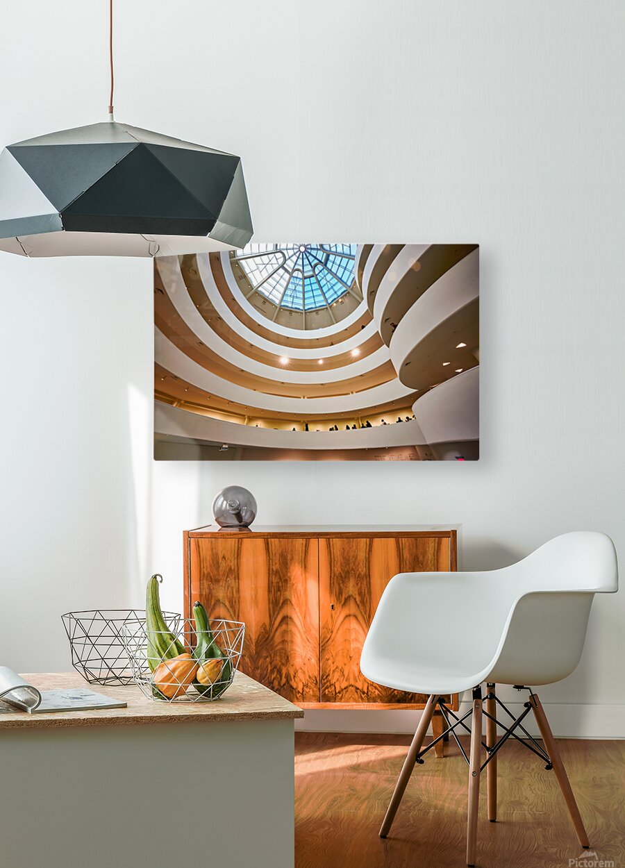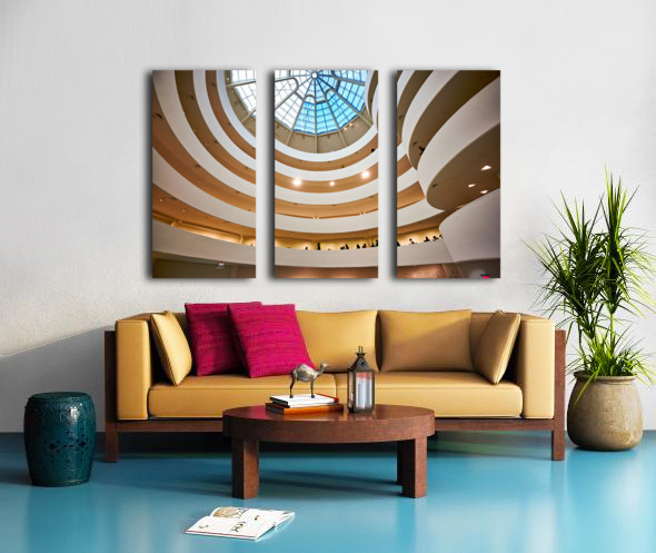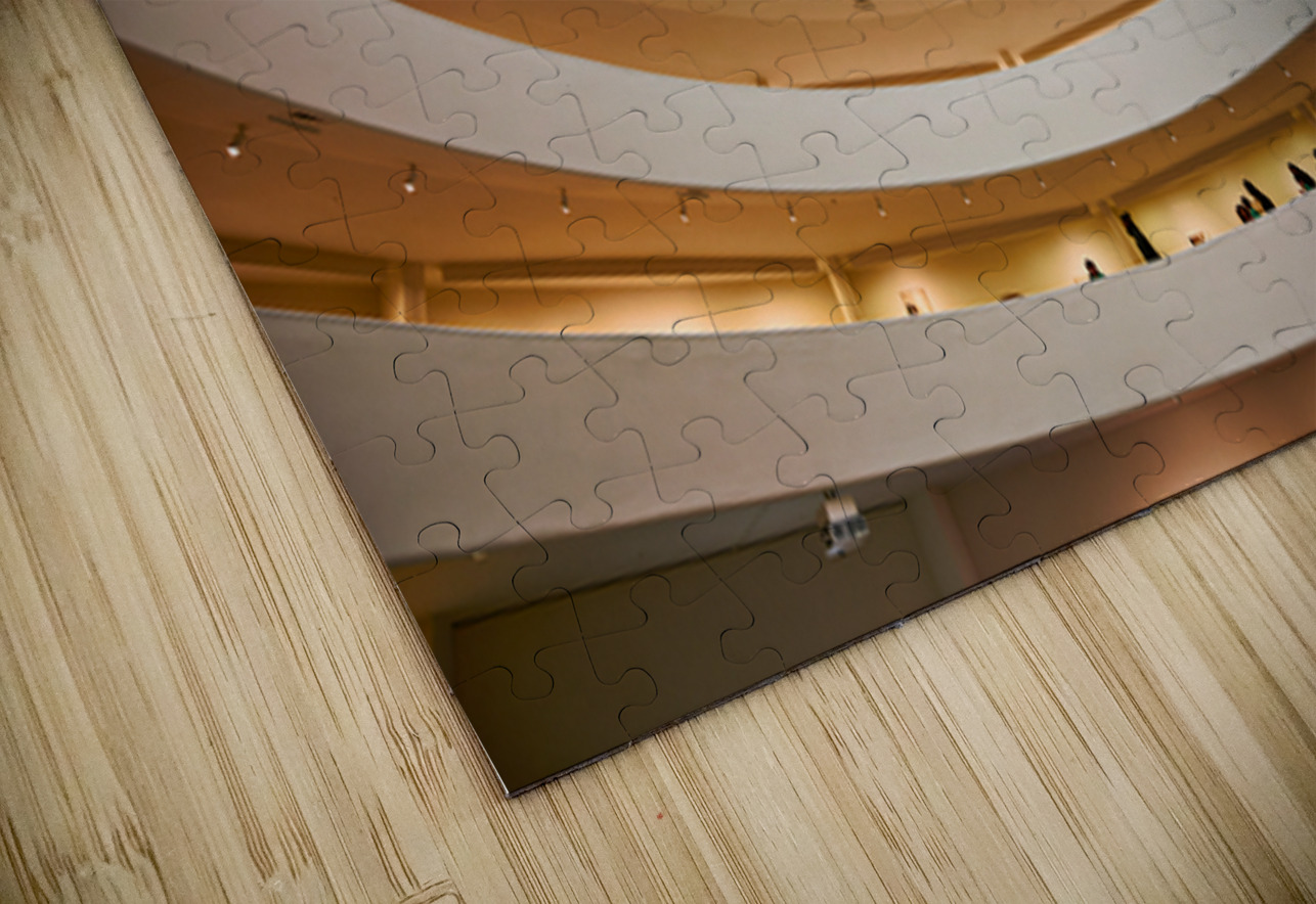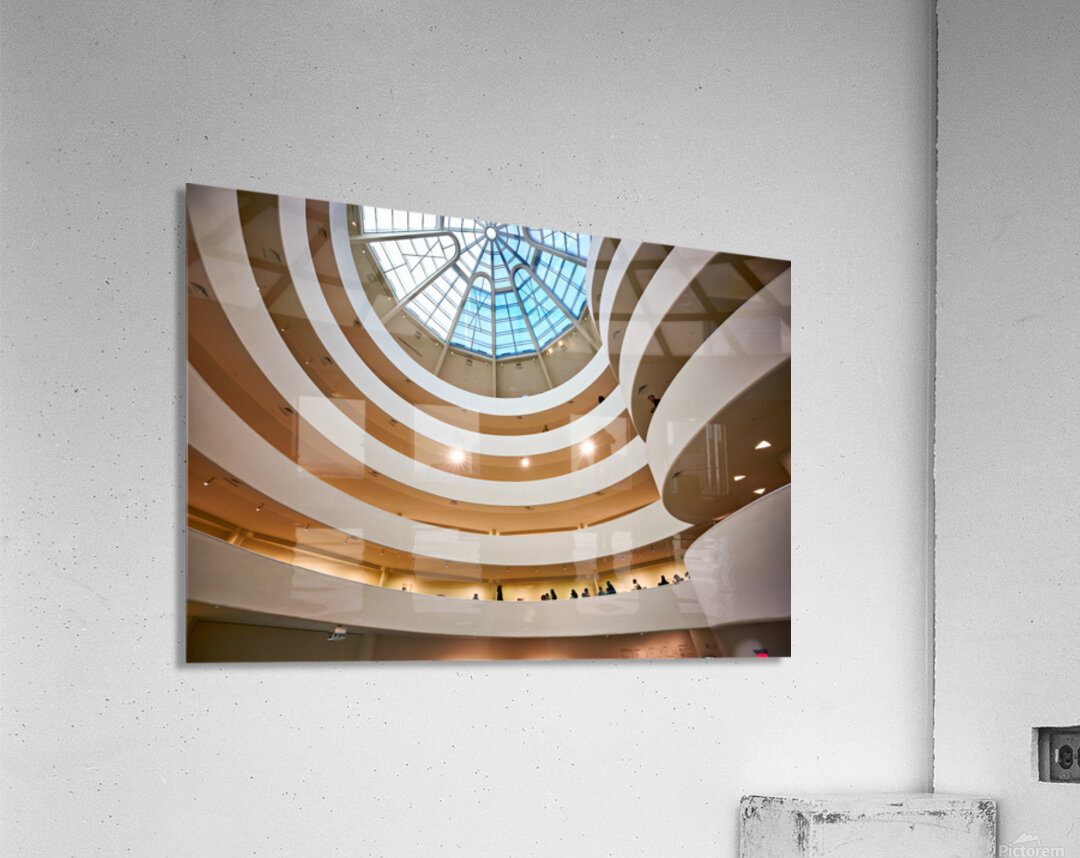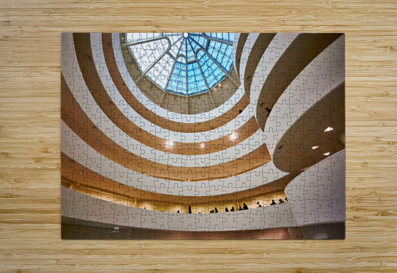 People walk along the spiral ramps of the Solomon R. Guggenheim Museum in Manhattan. The unique architecture draws attention.
