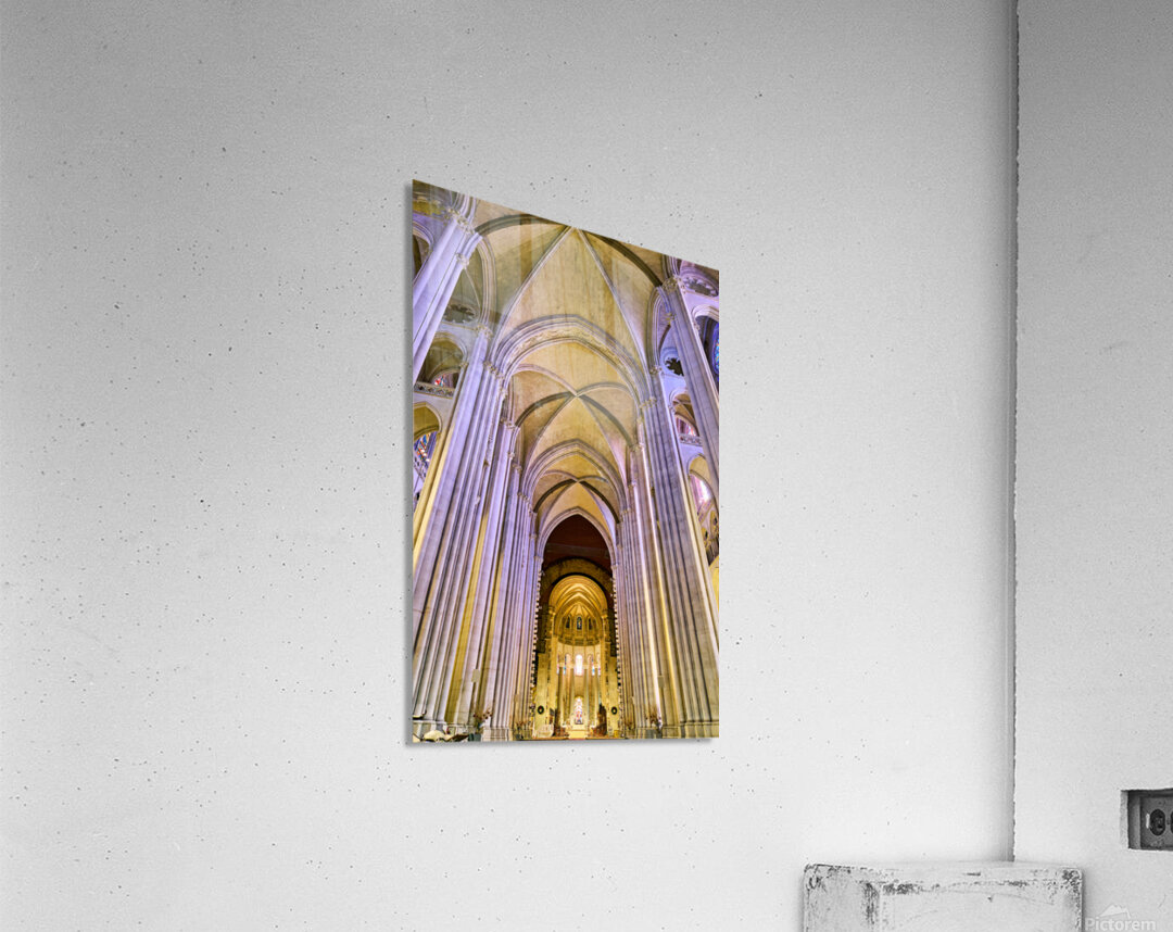 Manhattan cathedral interior showing arches and altar area Picture Frame Printing