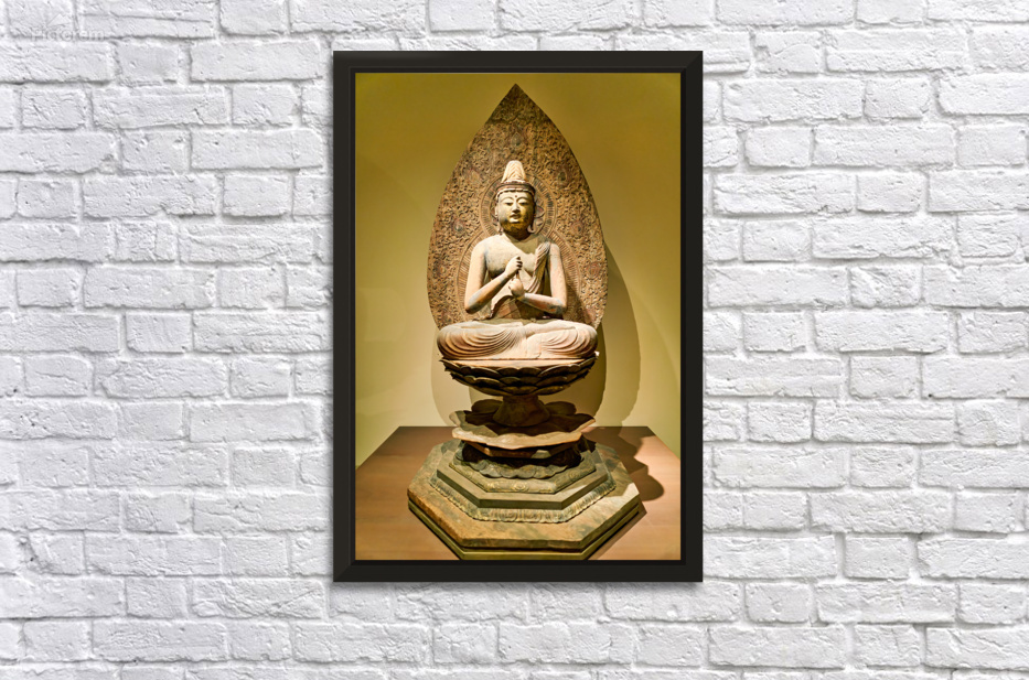 Buddha sitting on a lotus. It is located in the Asian Art Gallery at the Metropolitan Museum of Art in Manhattan New York.