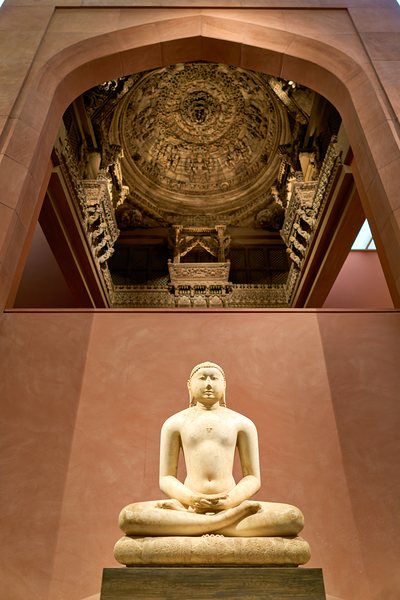 Visitors view a Buddha statue in the Asian Art Gallery at the Metropolitan Museum of Art in Manhattan New York. The space features Asian artwork.