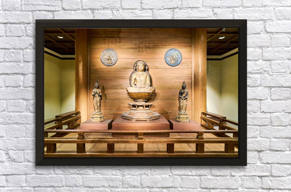 Visitors explore a gallery featuring a large Buddha statue and two smaller figures in the Asian Art section of the museum in Manhattan.