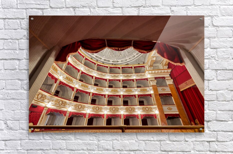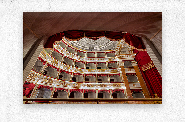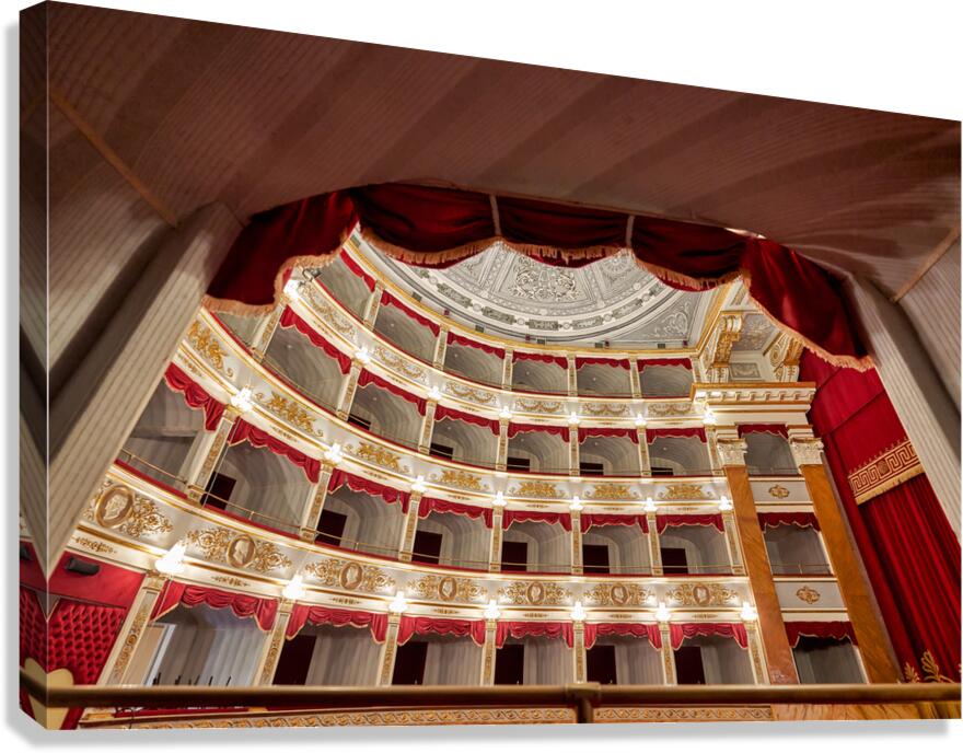 Get this artwork "Inside Teatro Tina di Lorenzo in Noto Sicily during a performanc" in a framed print.